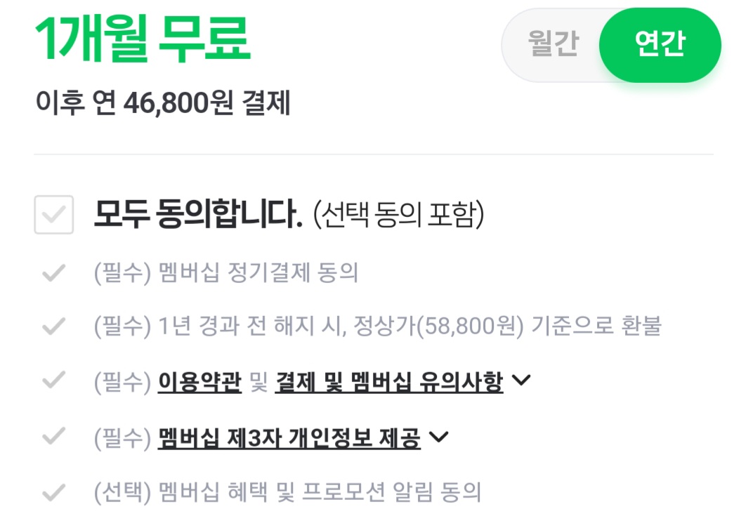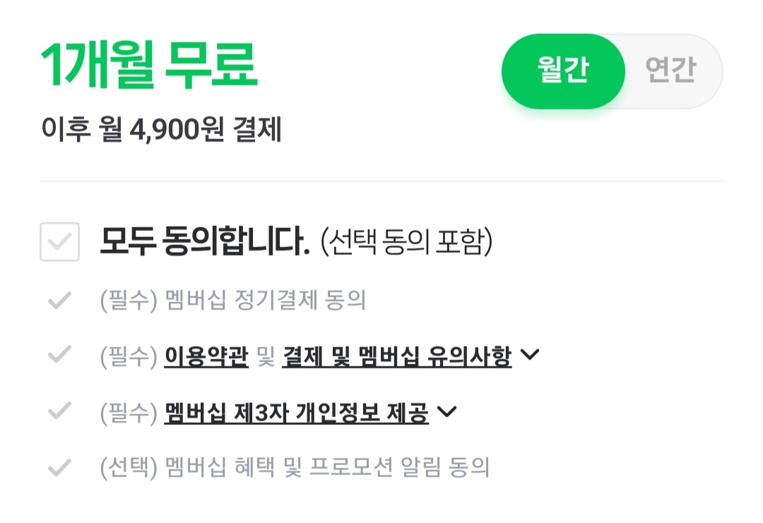 ▼네이버 멤버십 플러스에 가입하면 첫 달은 무료로 이용해 볼 수 있으니 관심 있으시면 꼭 한번 이용해 보시길 바랍니다 혹여나 괜찮게 느껴진다면 월간 4,900원짜리가 아닌 약 20% 할인된 연간 46,800원짜리를 사용하는 걸 추천드려 봅니다.