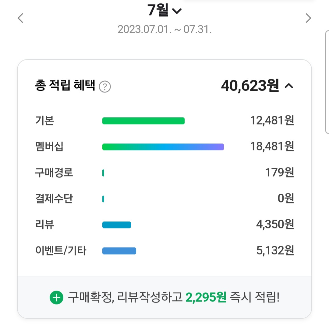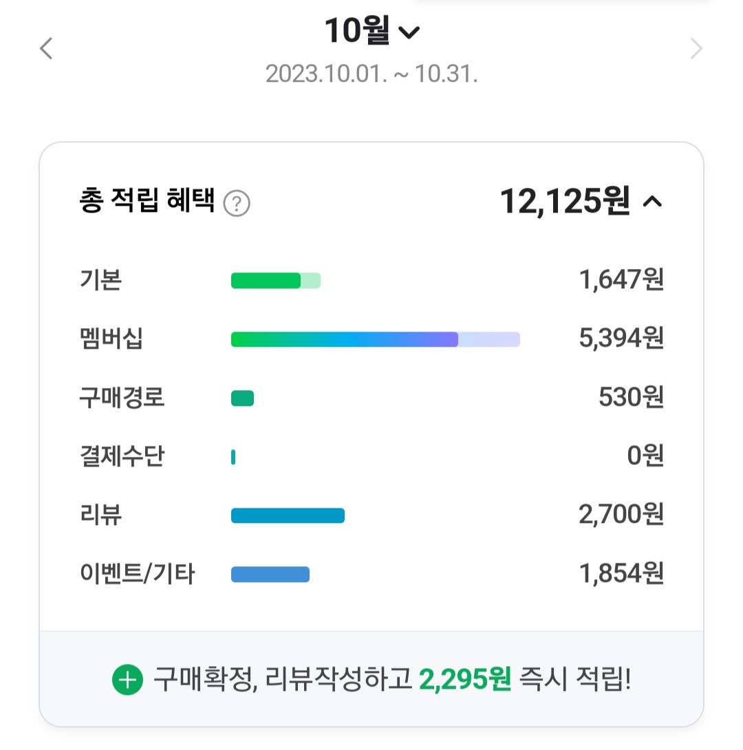 네이버 멤버십 플러스 가입 후 매달 모은 포인트