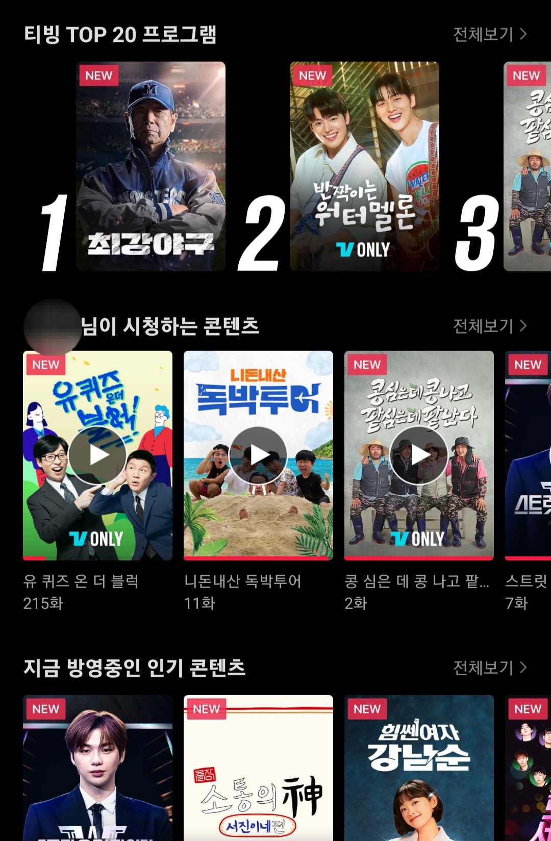▼저 같은 경우 예능을 정말 좋아하는데요. 요즘 정말 재미있게 보고 있는 콩콩팥팥, 니돈내산 독박투어 등등 을 네이버 멤버십 플러스 가입 후 티빙에서 볼 수 있어 좋았고 그 외에 드라마, 영화, 만화도 볼 수 있었는데요. 하지만 조금 아쉬운 점이 있다면 모바일로만 볼 수 있다는 점과 모든 티빙 콘텐츠를 볼 수 있는 건 아니라는 점 빼곤 좋았습니다.