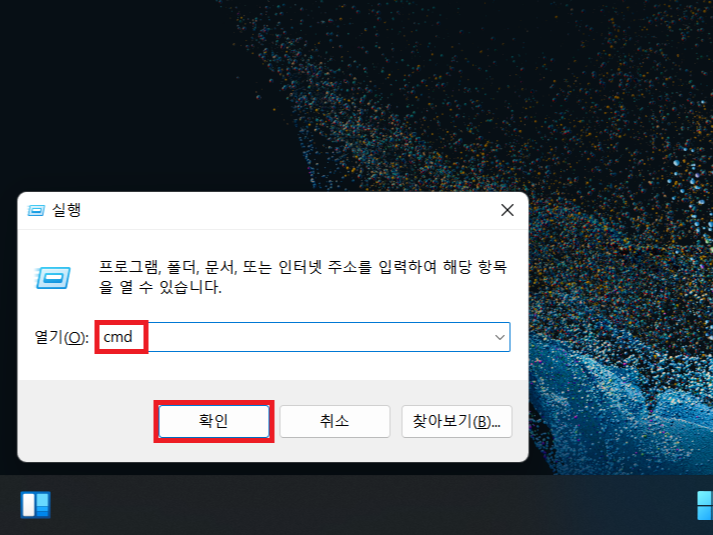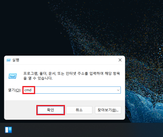 ▼해당 제품 모델명을 확인하고 싶은데 제품에 부착된 스티커 및 각인되어있는 글씨가 지워져 모델명 확인이 어렵다면 키보드 자판으로 [윈도우 키 + R 키]를 입력하면 실행창이 하나 뜰 겁니다. 그럼 [cmd]라고 작성 후 [확인] 버튼을 클릭해줍니다.