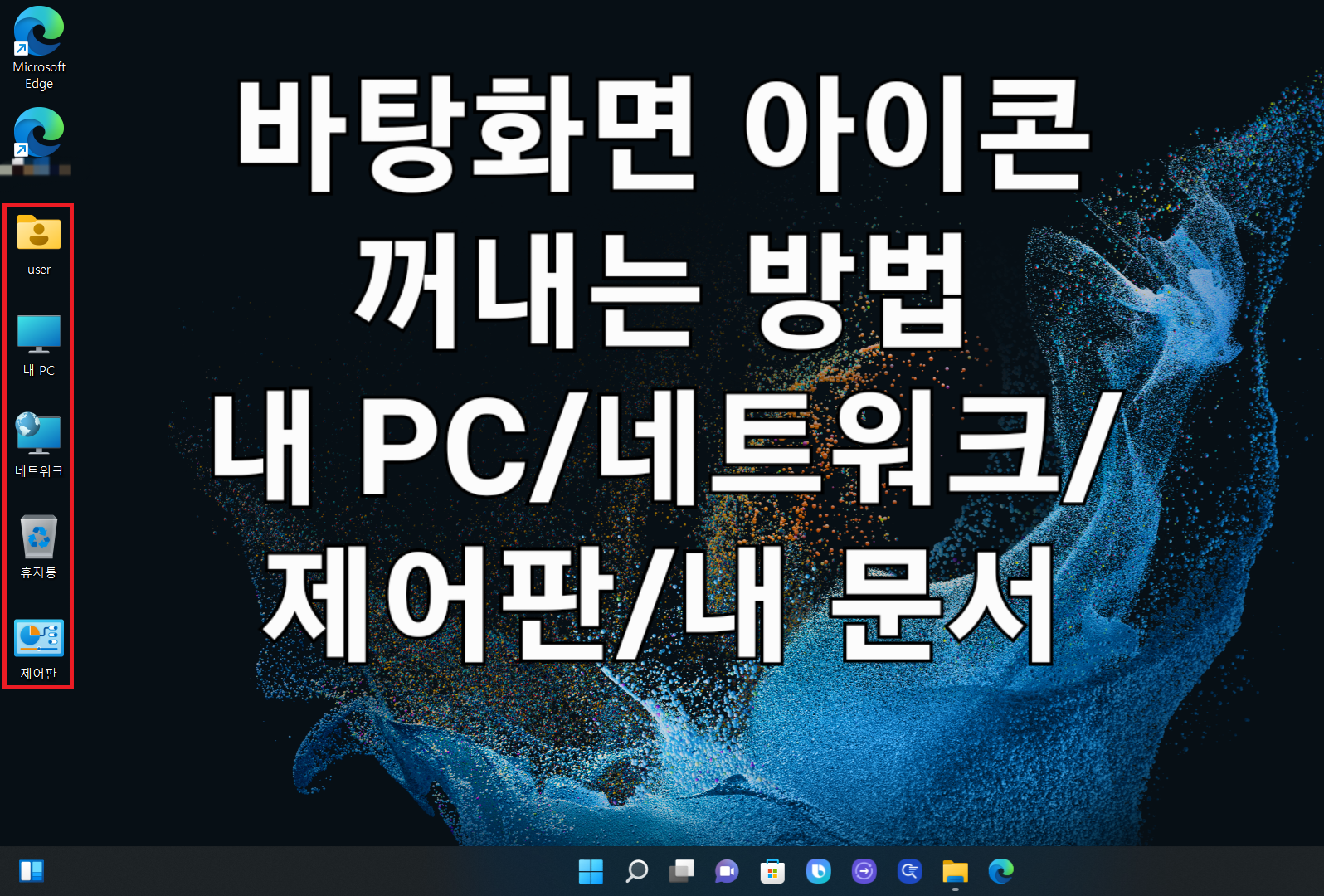 노트북이나 데스크탑을 새로 구매 후 기본 세팅을 다하고 나면 바탕화면에 마이크로 엣지, 휴지통 밖에 안 보일 겁니다. 만약 나는 내 PC 및 내 문서, 제어판 등등 아이콘을 바탕화면에 꺼내 놓고 사용은 하고 싶은데 어떻게 생성해야 하는지 잘 모르시는 분들을 위해 이번 포스팅을 준비해보았습니다.