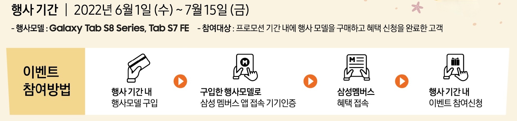 이벤트 신청방법은 해당 모델 구입 후 삼성 멤버스 앱 접속한 다음 삼성 계정 로그인한 후 삼성 멤버스 혜택 접속하고 행사 기간 내 이벤트에 참여하면 됩니다.