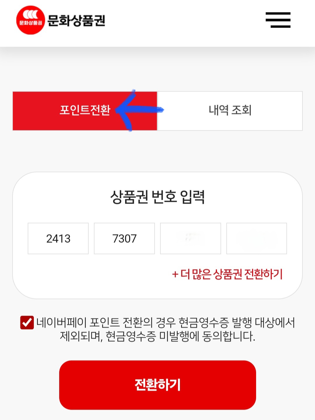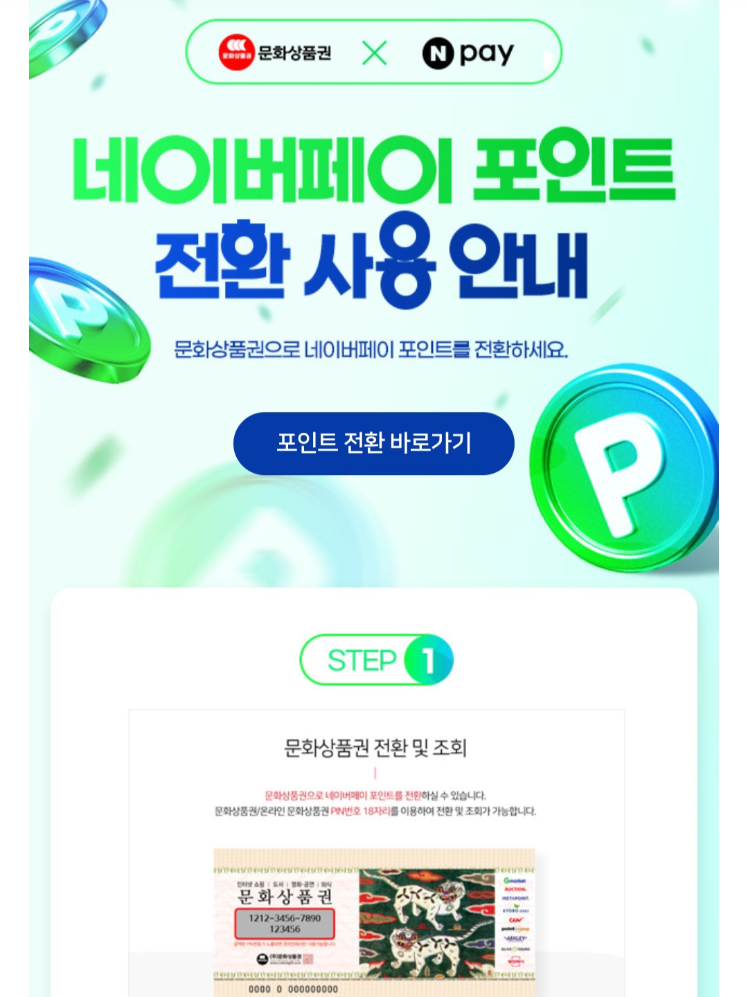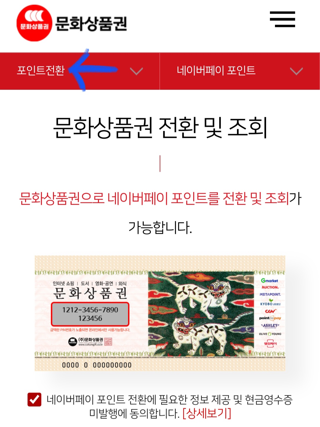 ▼그럼 문화상품권을 네이버페이 포인트로 전환하는 페이지로 넘어가집니다.