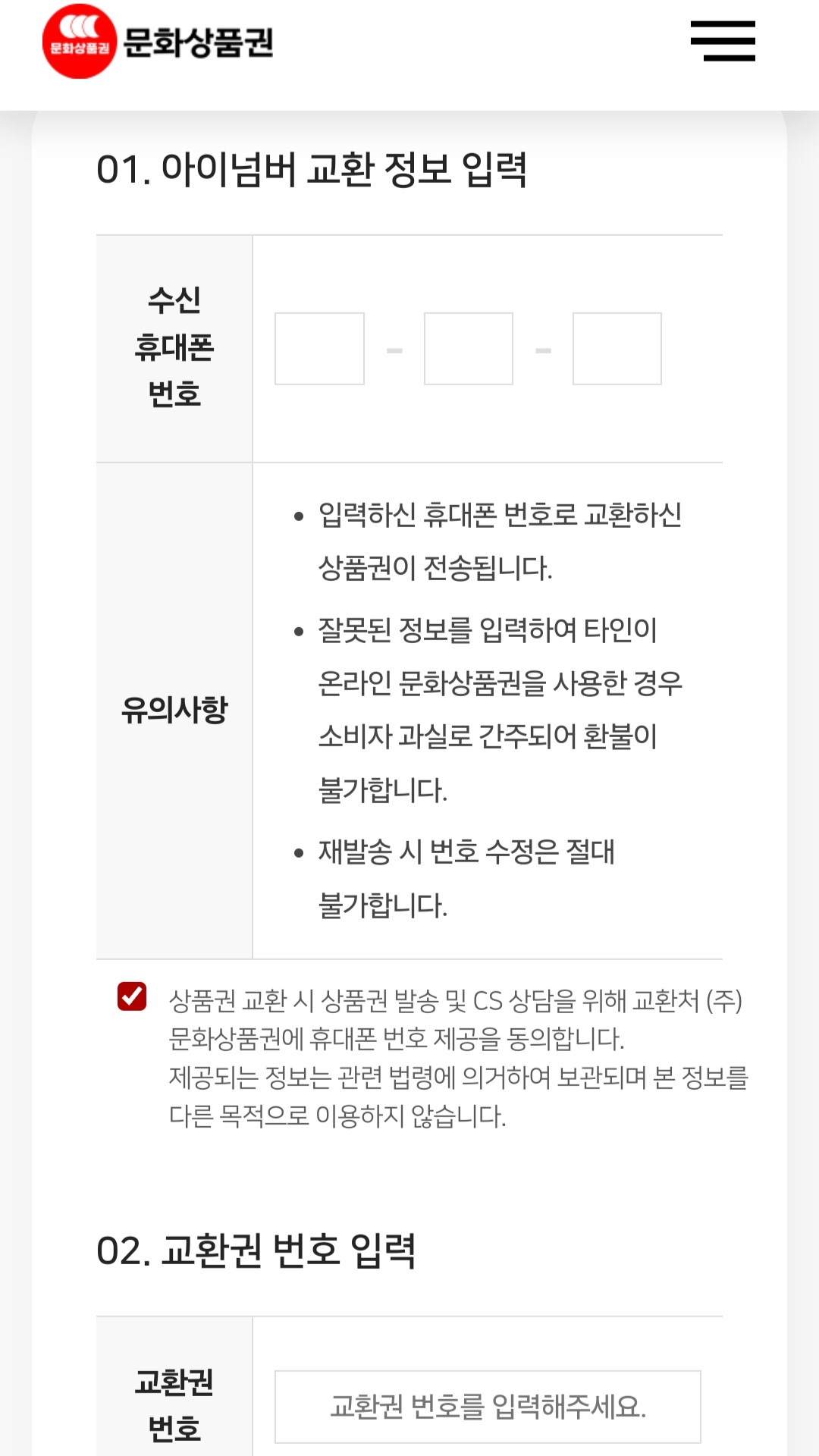 ▼그다음 바로 밑에 핸드폰 번호를 등록하고 교환권 번호 12핀을 등록해 주면 됩니다.
