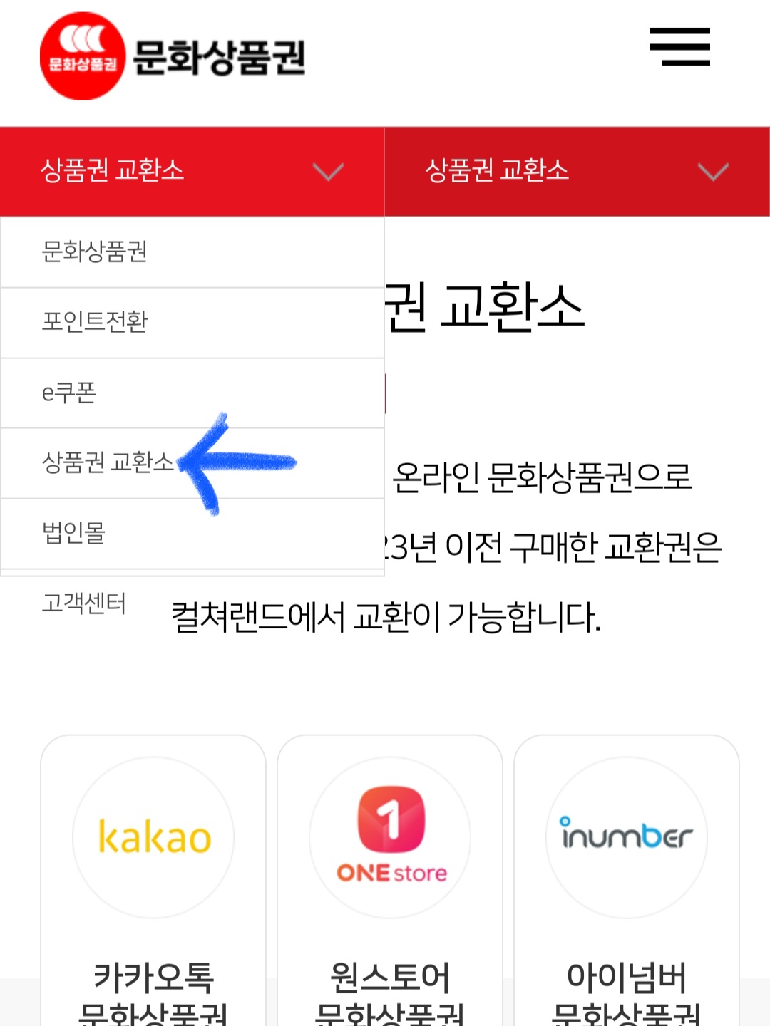 ▼그다음 문화상품권 12핀을 전환해야겠죠? 상단에 [포인트전환]을 클릭 후 [상품권 교환소]로 전환해 주세요.