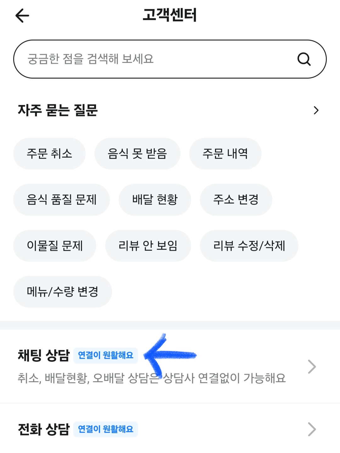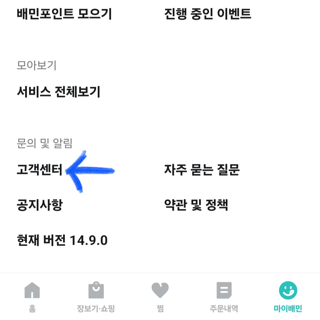 ▼그다음 스크롤을 밑으로 쭉 내려 [고객센터]를 클릭해 줍니다.