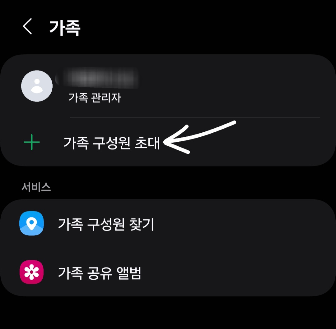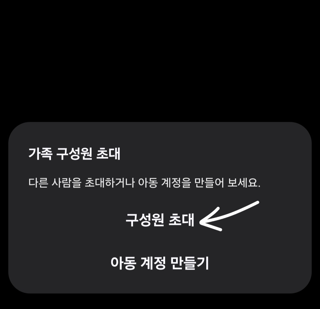 ▼가족 그룹을 생성했다면 [+ 가족 구성원 초대]를 클릭 후 [구성원 초대]를 해주세요.