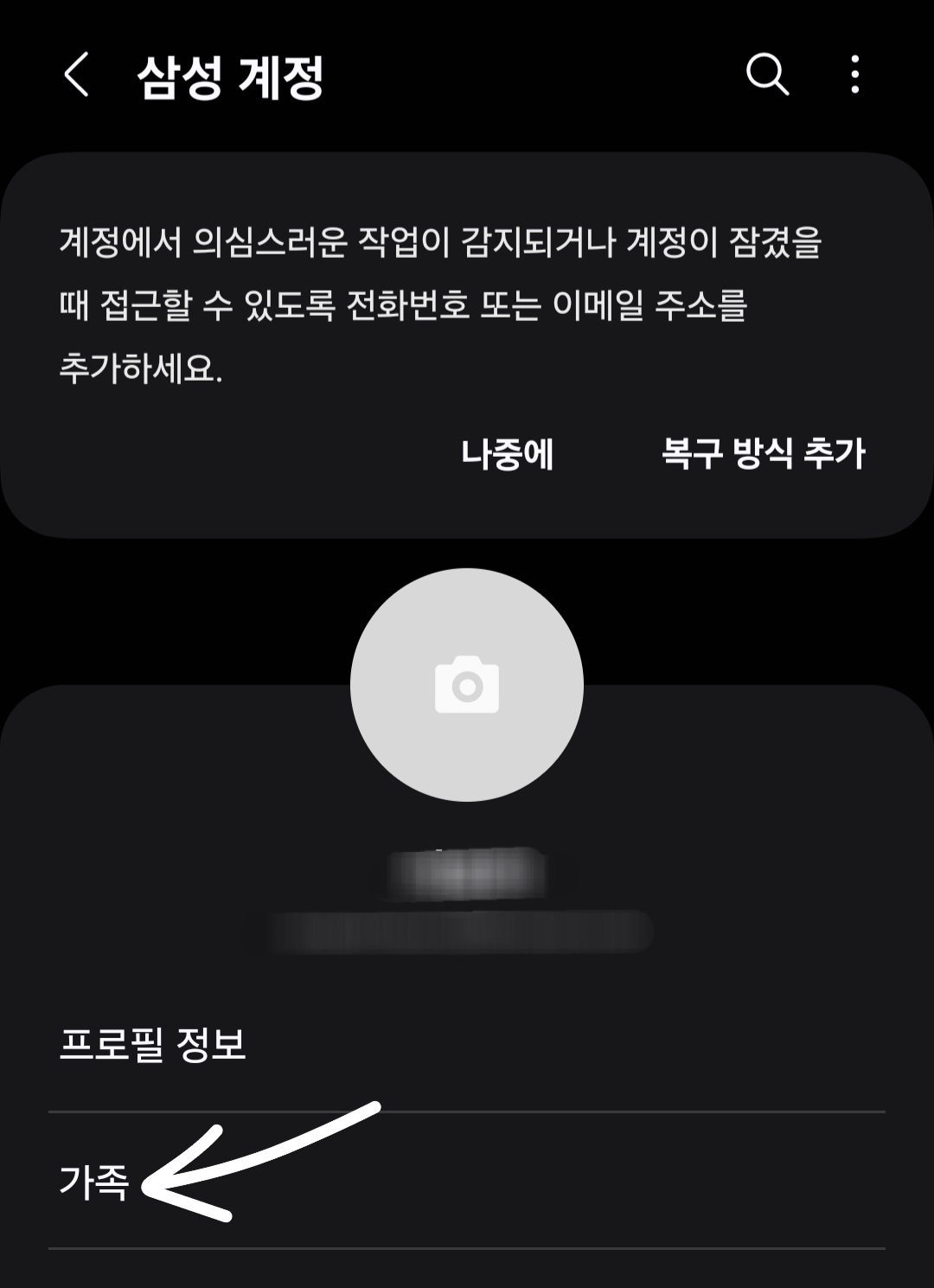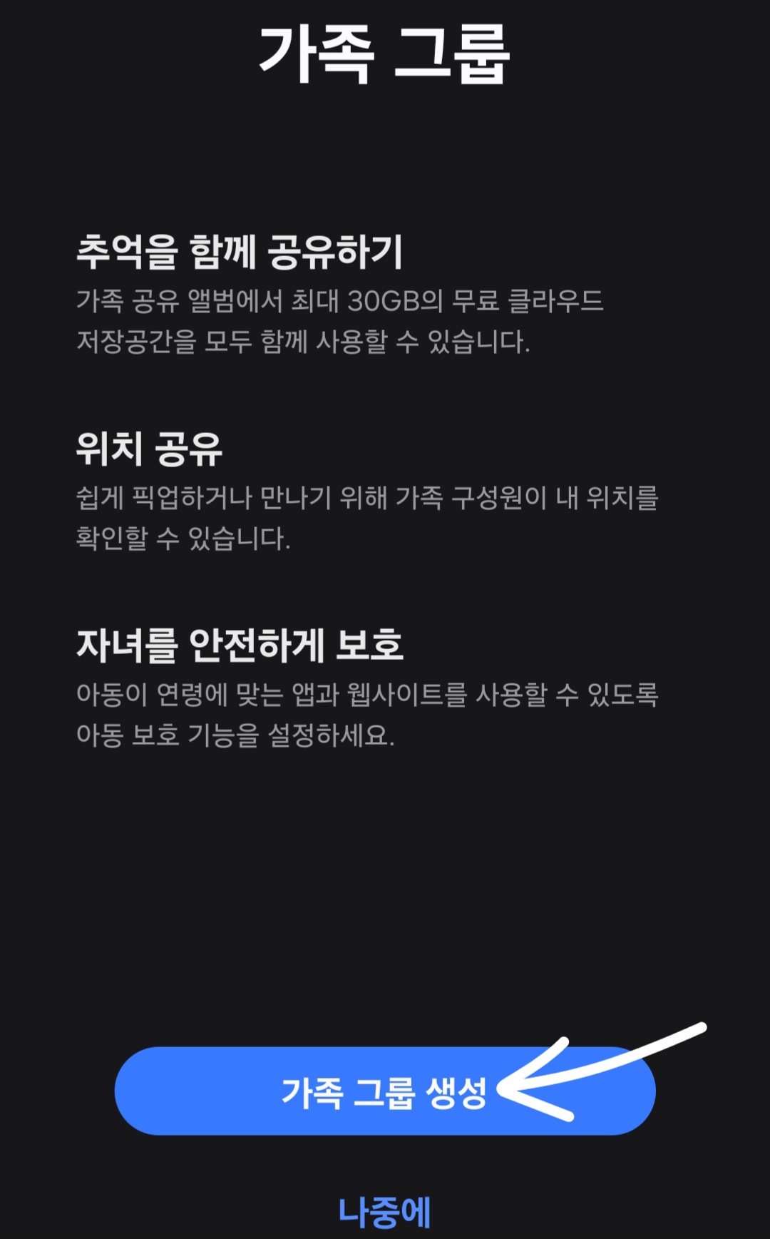 ▼그다음 삼성 계정 설정란에서 [가족]을 클릭 후[가족 그룹 생성]를 해주시면 됩니다.