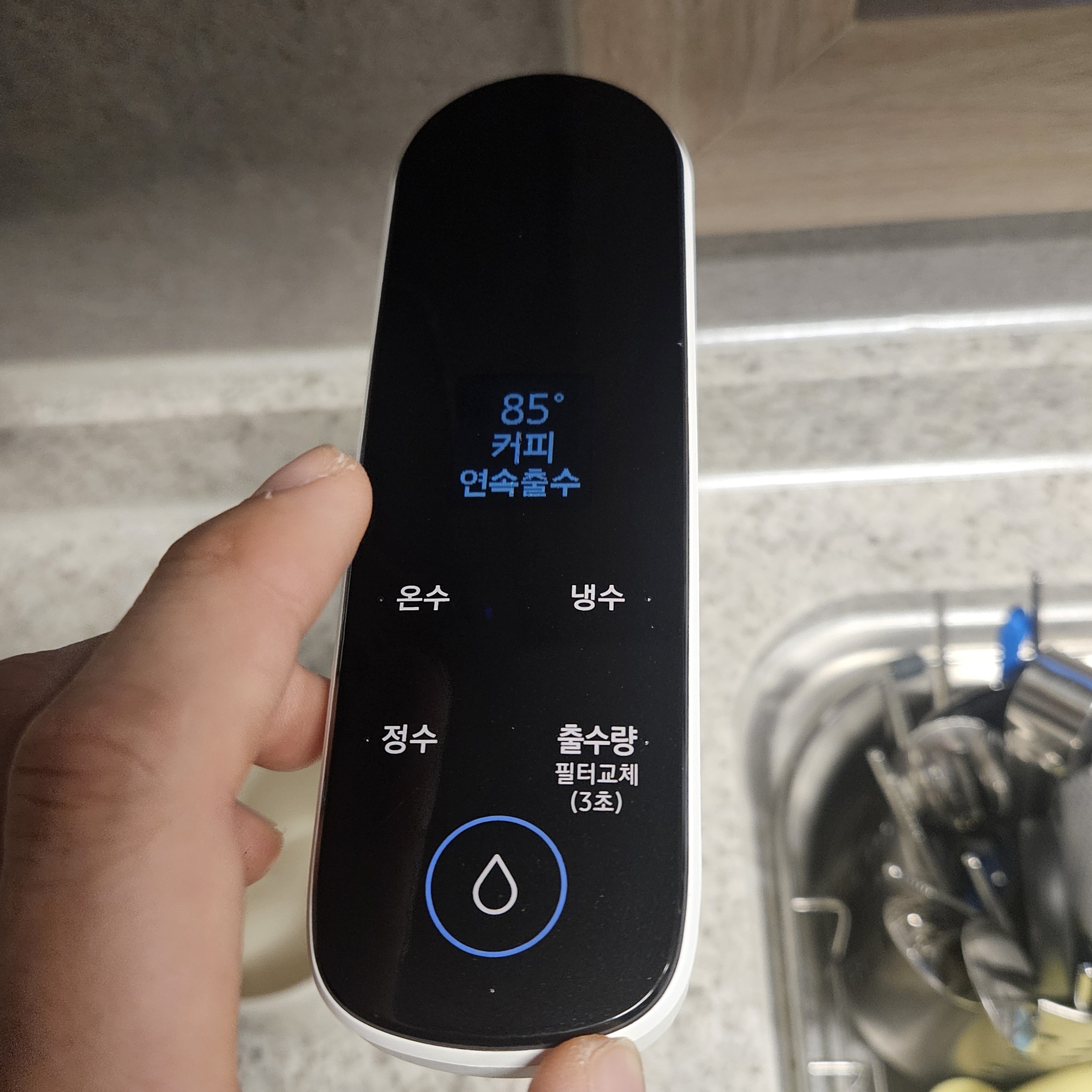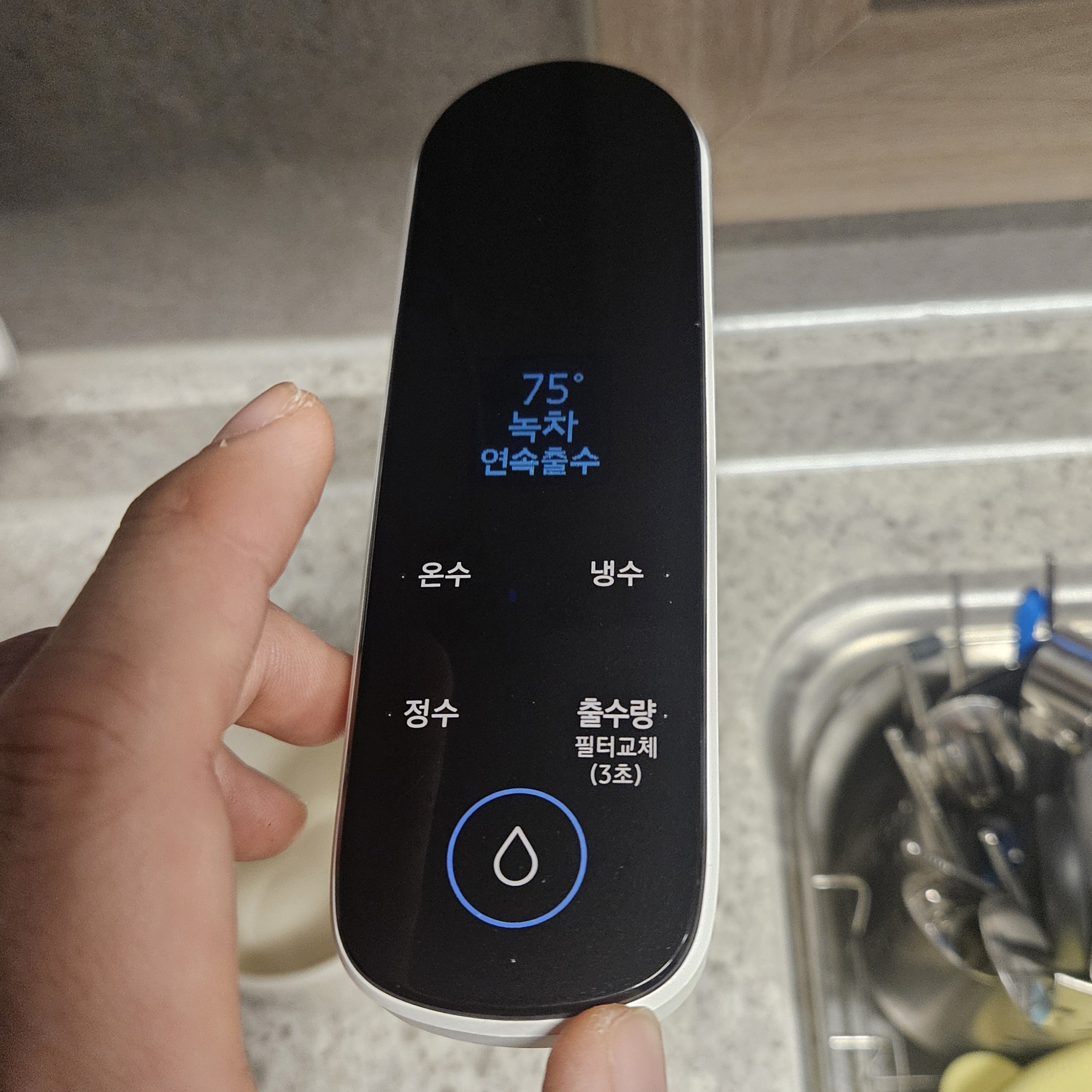 삼성비스포크 정수기 온도 설정은 기본으로 75도-85도-40도 순으로 설정되어 있는데요. 이 기본으로 설정되어 있는 출수량 및 온도를 바꿔보도록 하겠습니다.