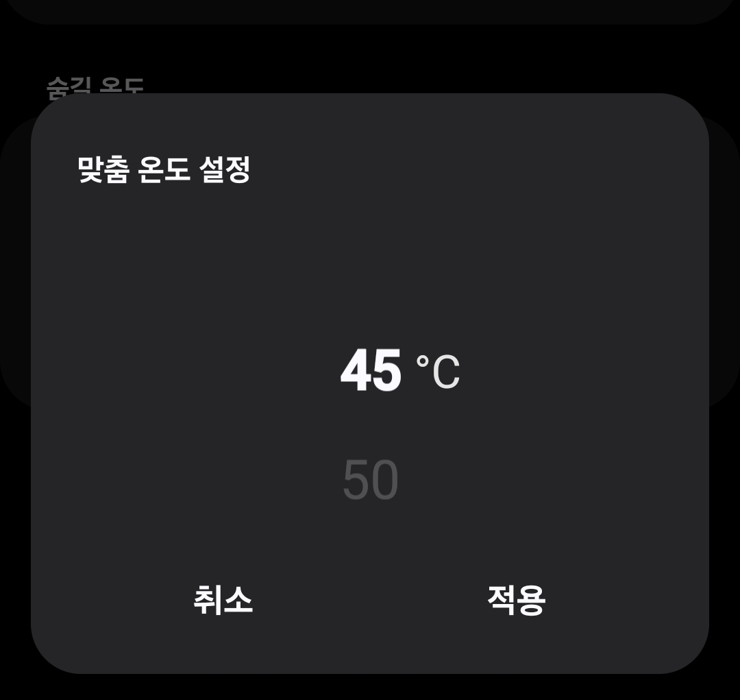 ▼그럼 기본으로 설정되어 있는 온도 외에 숨어있는 온수 온도인 90도까지 설정할 수도 있고 맞춤 온도를 클릭하면 기본 온도 설정 외에 40도 - 85도까지 5도 단위로 온도를 설정할 수도 있답니다.