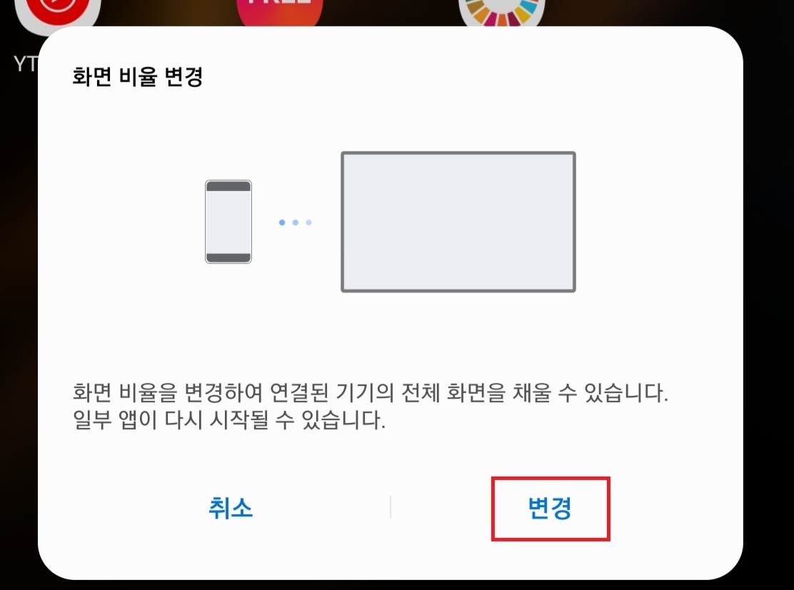 그럼 해당 노트북이랑 연결이 되고 화면 비율 변경을 클릭하기만 하면 모든 설정이 끝납니다.