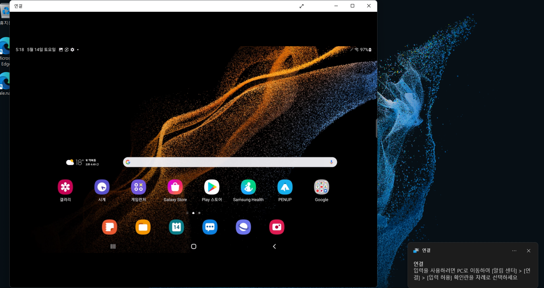 갤럭시탭 화면을 삼성 노트북에서 보는 방법(세컨드 스크린 응용)