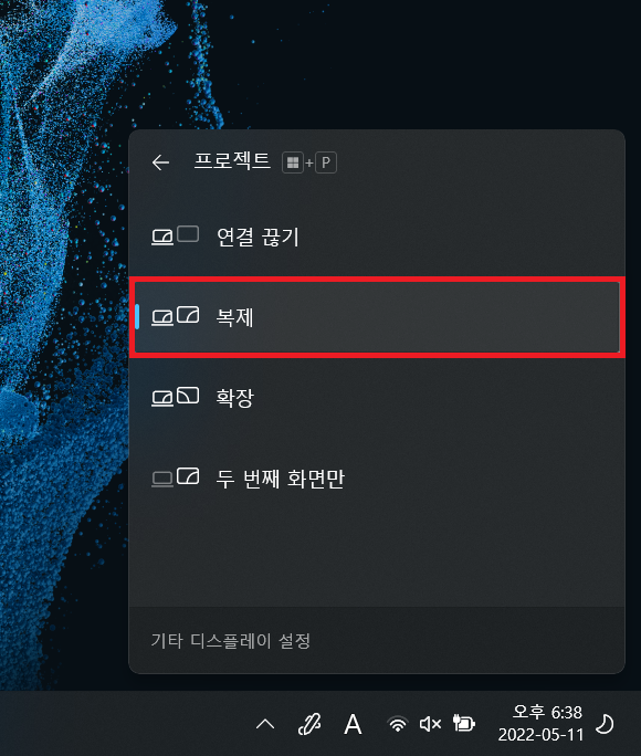 그럼 해당 노트북이랑 연결이 되고 화면 비율 변경을 클릭하기만 하면 모든 설정이 끝납니다.