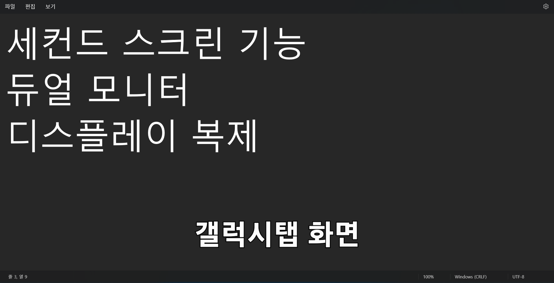 그리고 Fn 키와 F4 키를 한번 더 클릭해 확장에 두고 사용하게 될 시 이미지처럼 삼성 노트북 화면을 확장에 두고 사용할 시 더욱더 다양한 작업을 할 수 있게 도와줍니다.