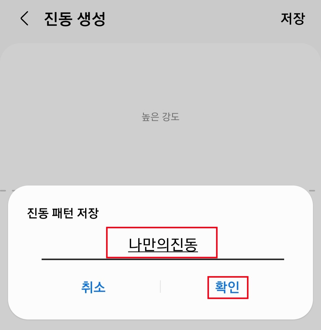 ▼마음에 드는 진동음을 만드셨다면 저장을 누르고 이름을 만들어준 다음 확인을 클릭해줍니다.