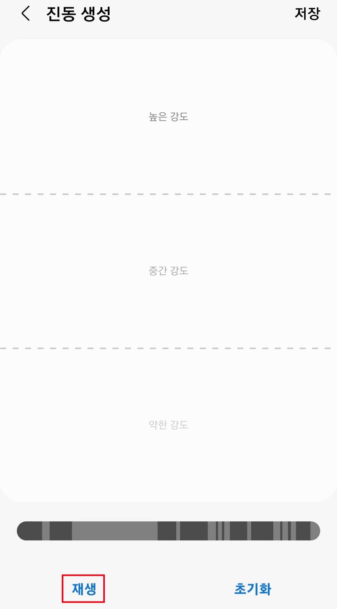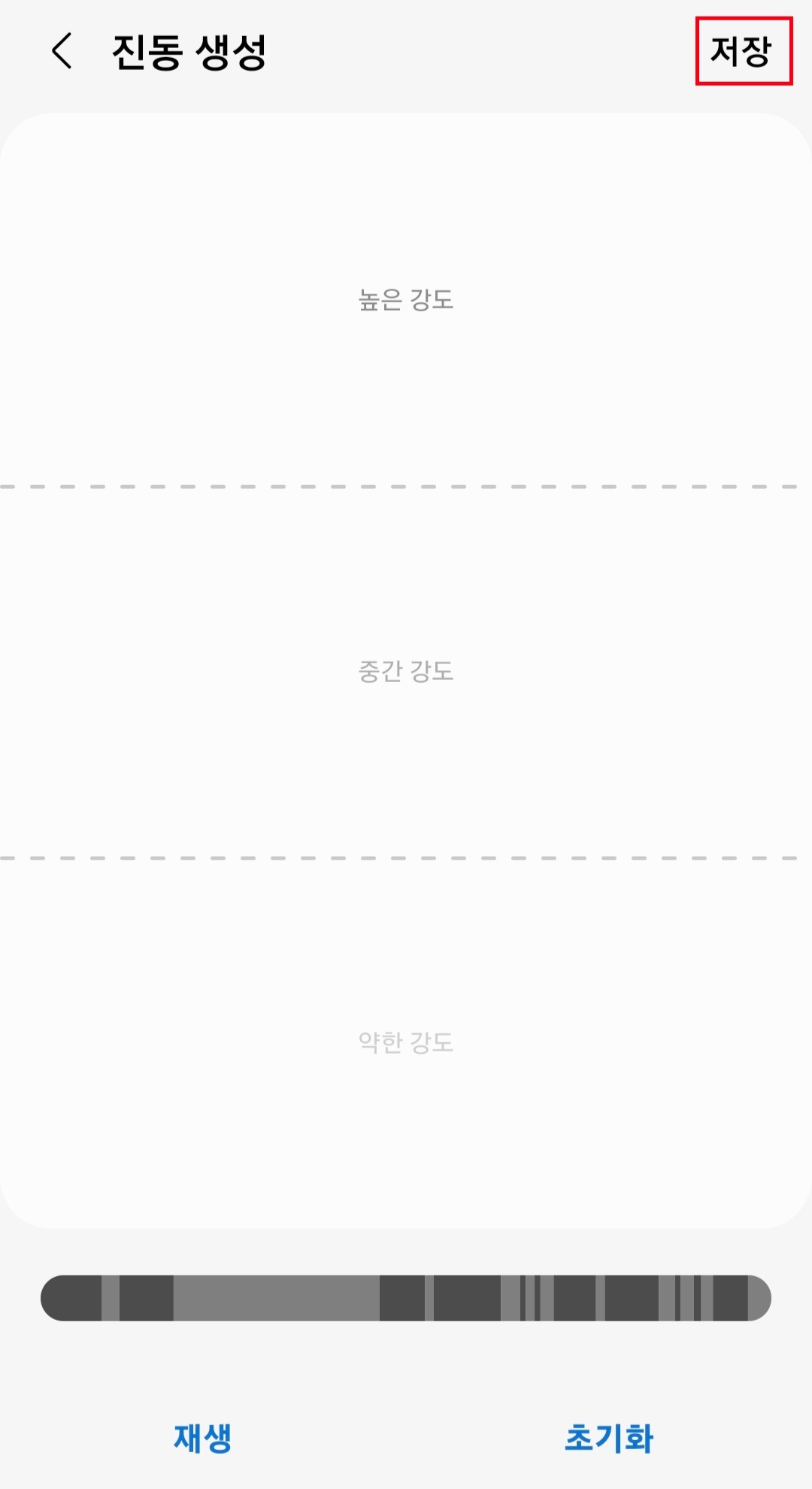▼그다음 내가 만든 진동음이 잘만들어졌는지 재성 버튼을 눌러서 확인해주고 만약 마음에 안 든다면 초기화를 눌러서 다시 만들어줍니다.