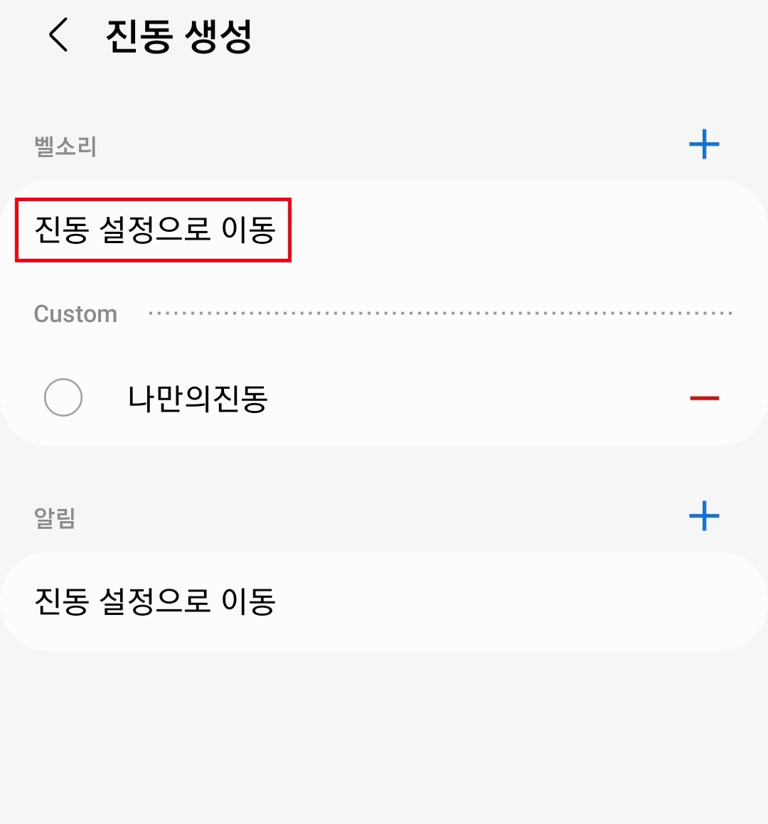 ▼그다음 "진동 설정으로 이동"을 클릭 후 내가 만든 진동음을 선택하면 내가 만든 진동음을 사용할 수 있습니다.