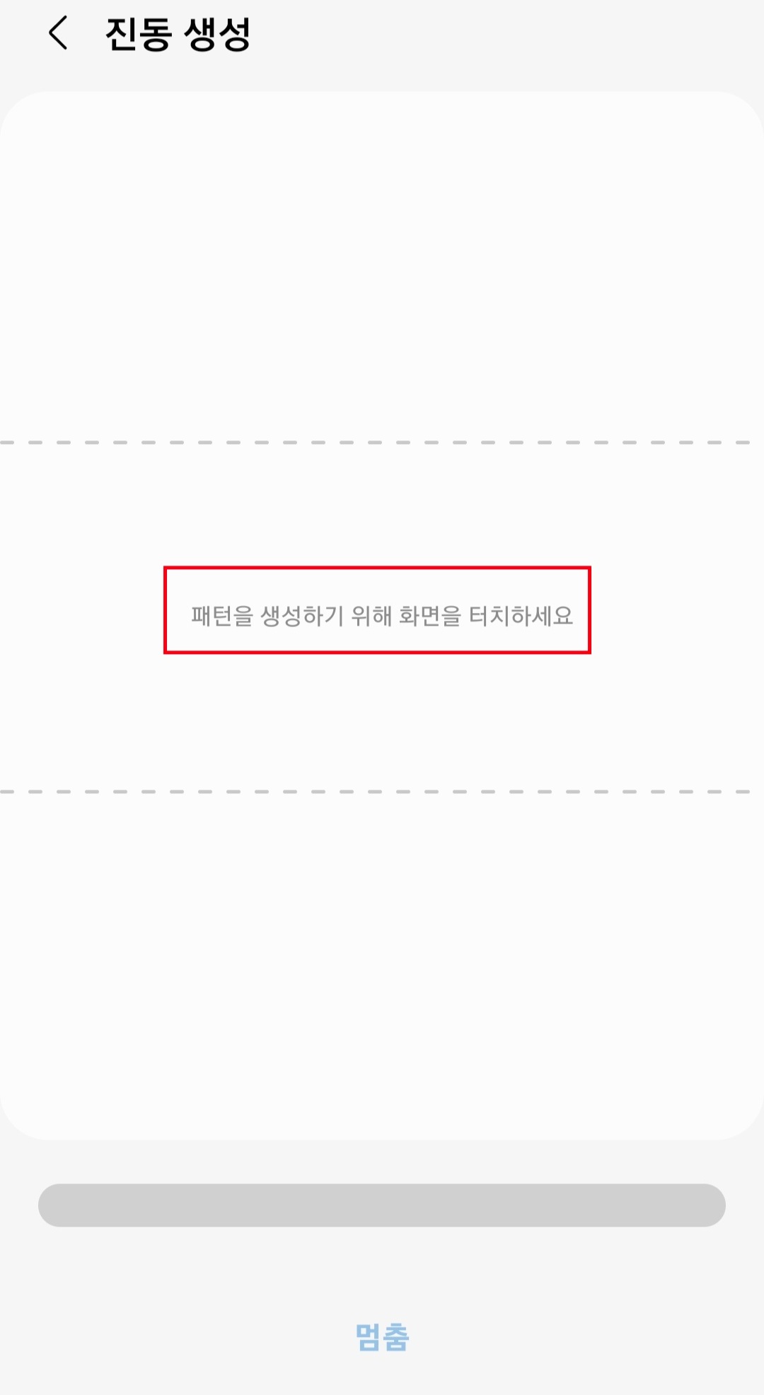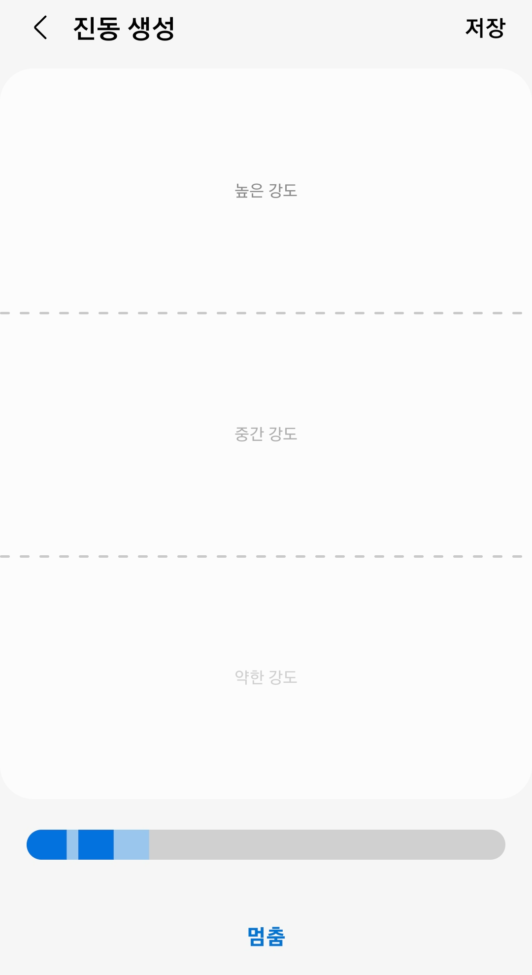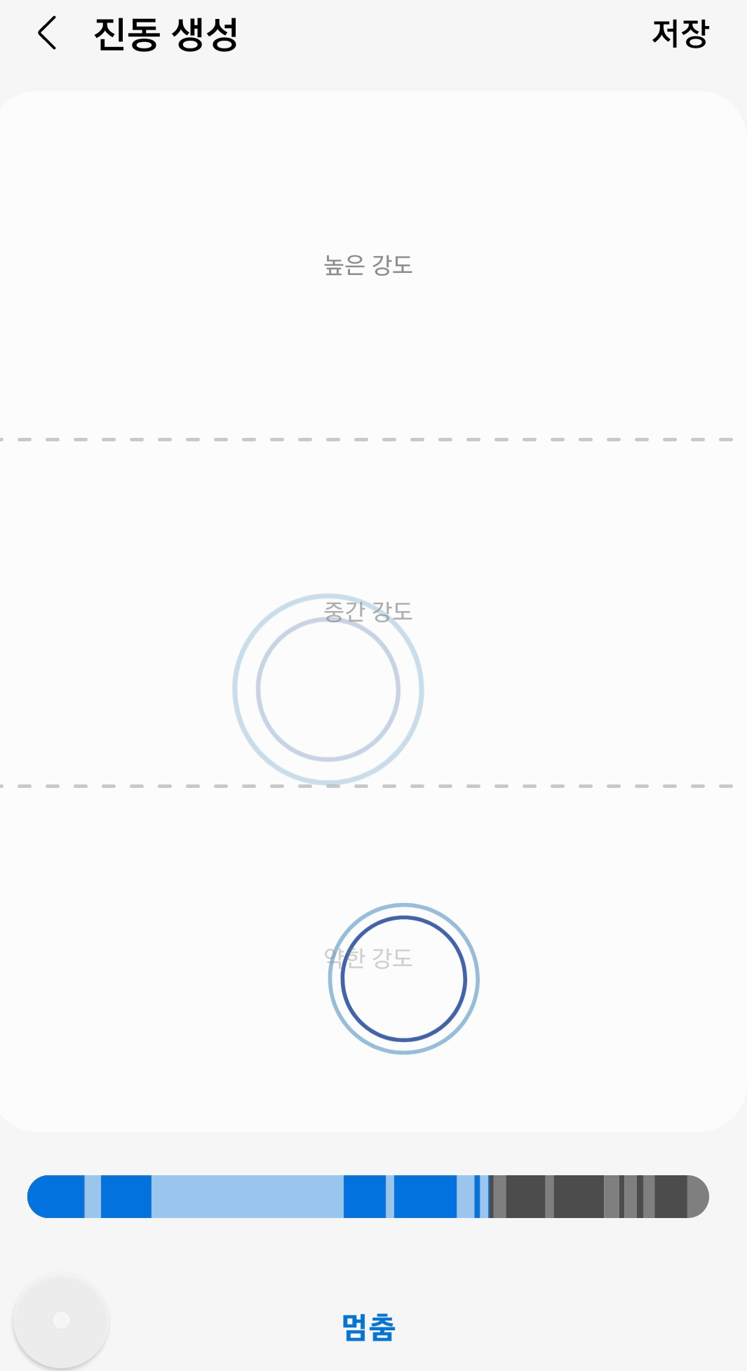 ▼그다음 나만의 진동을 만들기 위해 스마트폰 화면을 터치해 높은 강도 중간 강도 약한 강도를 조절하면서 손가락으로 눌렀다 뗐다가 혹은 꾹 누르고 있다가 뗐다가를 반복해서 나의 진동음을 만들어 줍니다.