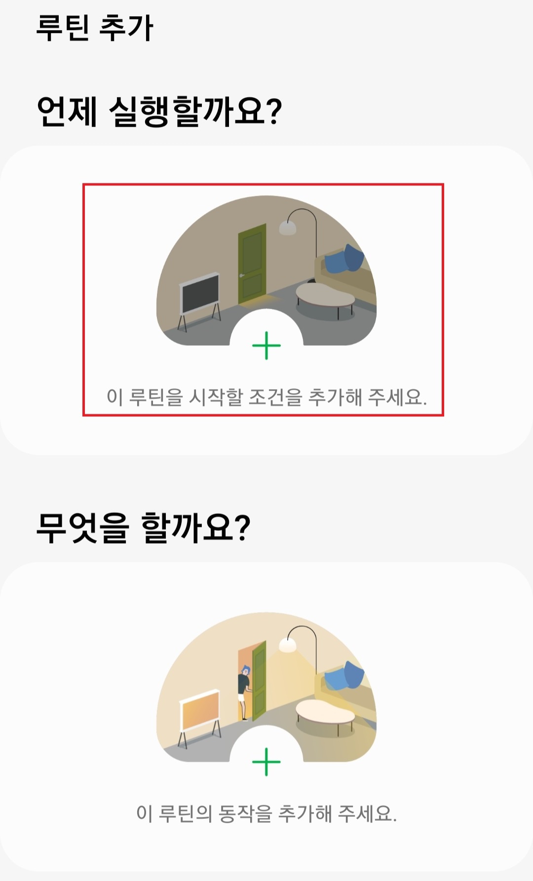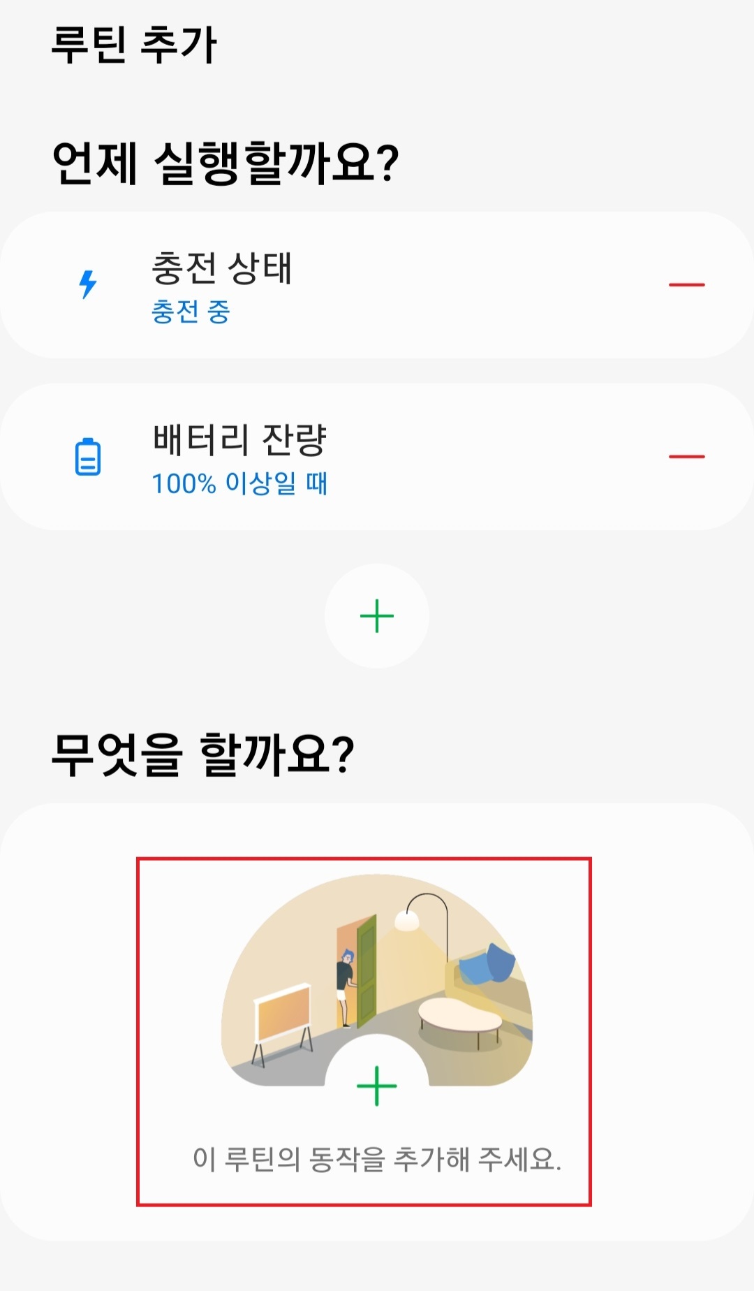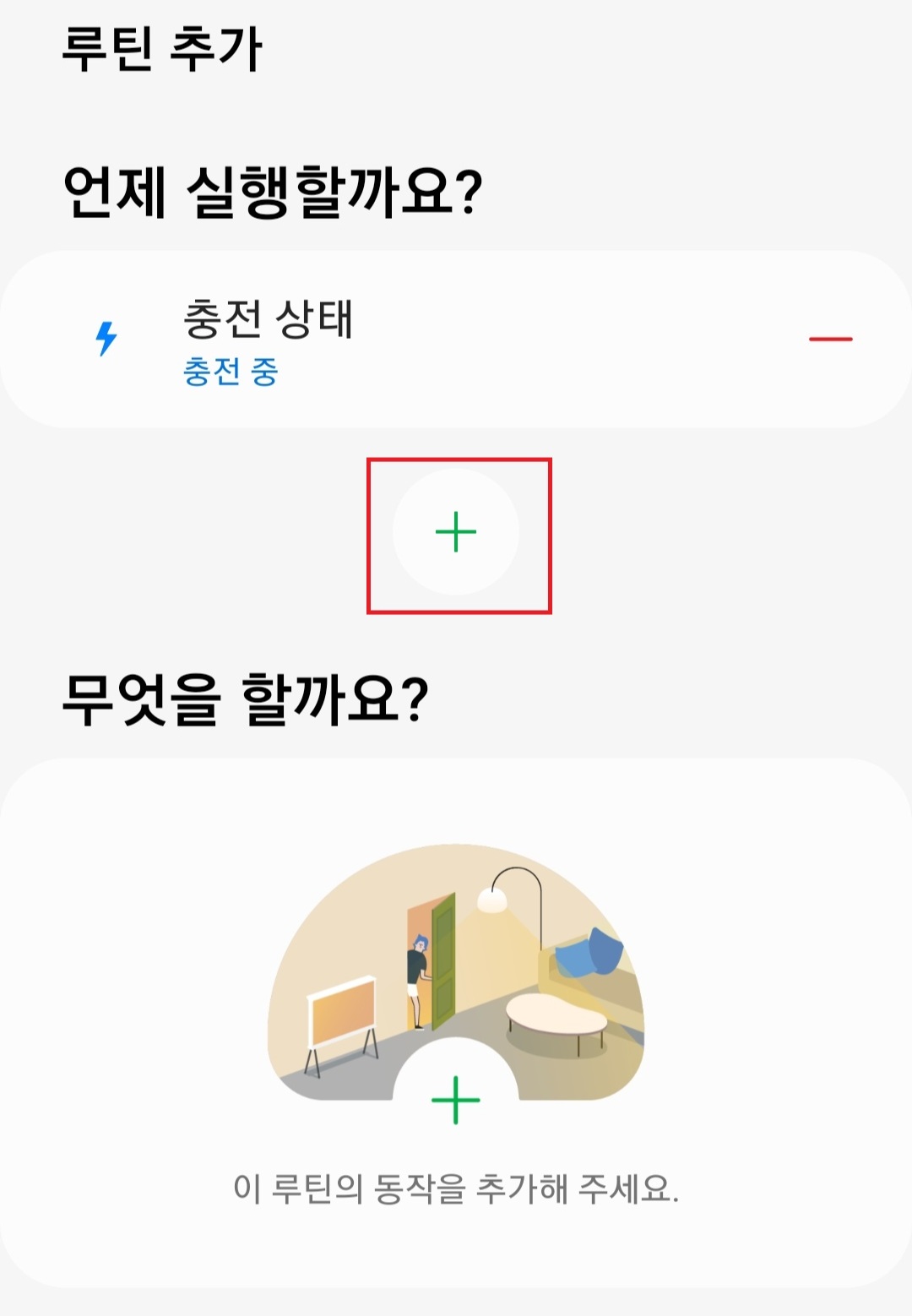 그다음 빅스비 루틴 기능을 실행했다면 제일 밑 하단에 "루틴 추가"를 클릭을 해주고 언제 실행할까요? 란에 있는 "+" 버튼을 클릭해줍니다.