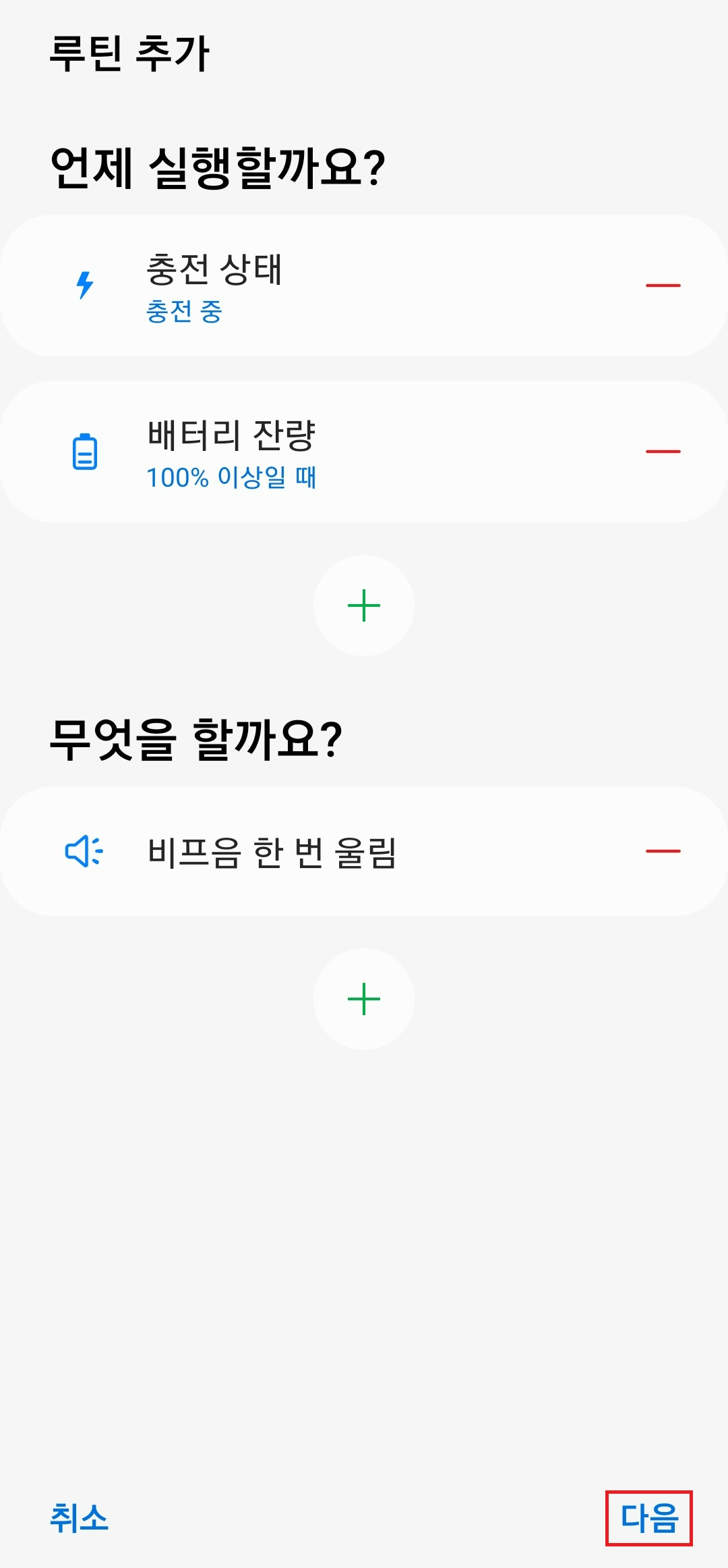 지금까지 스마트폰 혹은 갤럭시탭 배터리 100%로 충전시 기기에서 알람 울리게 하는 방법에 대해 알아보았습니다. 그 외에 빅스비 루틴 기능을 사용하면 보다 다양한 나만의 루틴을 만들어서 사용할 수 있습니다. 그럼 현재 사용 중인 스마트폰 혹은 갤럭시 탭 배터리 배터리 보호하면서 오래오래 사용하시길 바랍니다. 감사합니다.