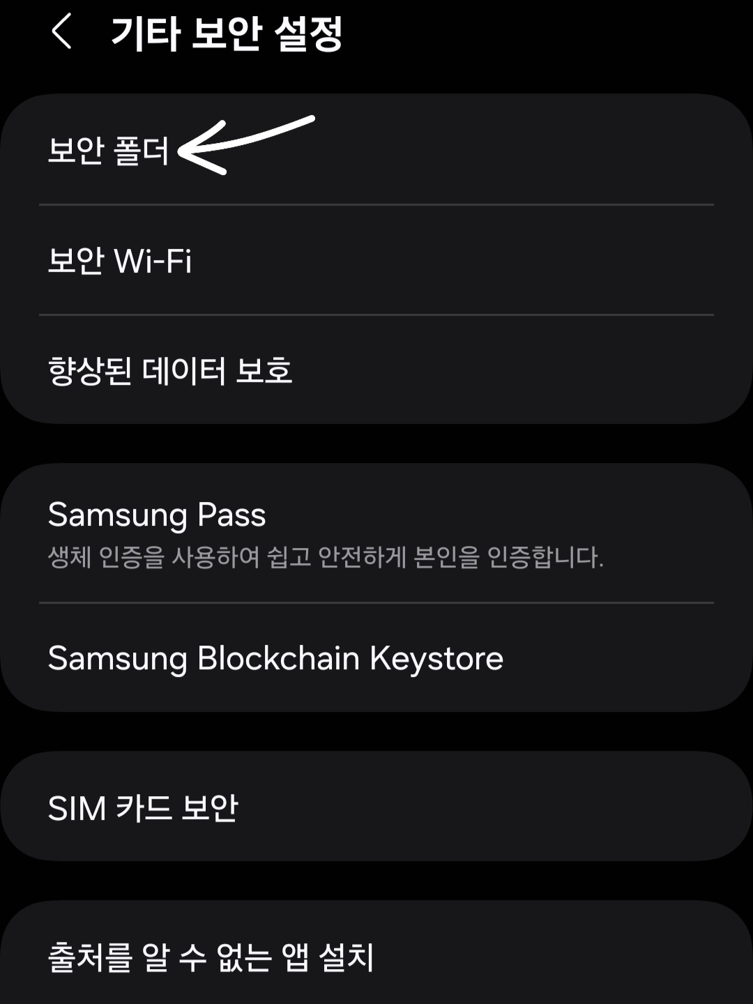 ▼그다음 [기타 보안 설정] - [보안 폴더]를 클릭해 주고 보안 폴더에 관한 간단한 동의 및 간단한 설명과 함께 로딩이 시작되는데요.