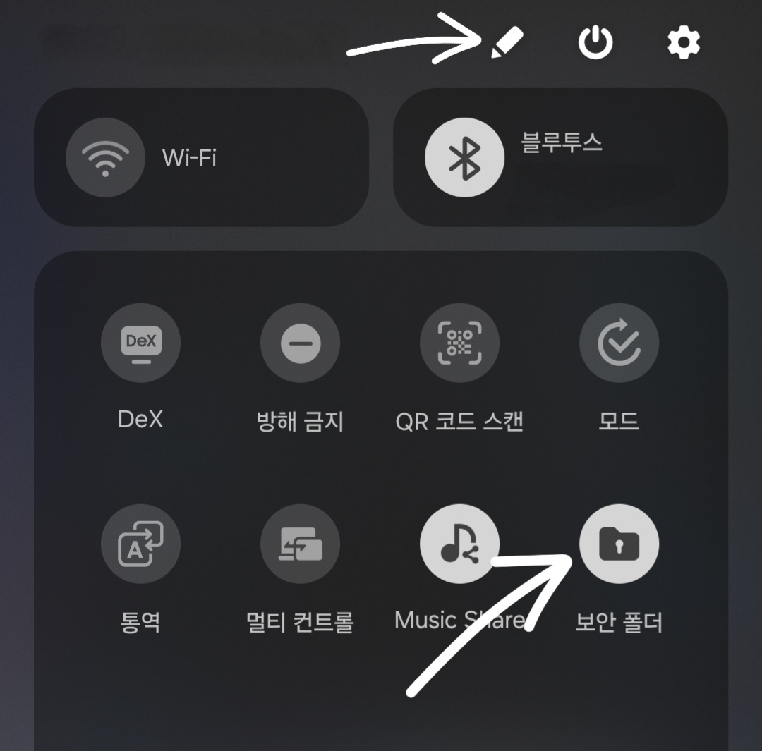 ▼만약 앱스에 보안 폴더 앱이 보이는 게 싫다면 [빠른 설정창]에서 [보안 폴더] 아이콘을 클릭해 쉽게 숨기거나 활성화시킬 수도 있습니다. 만약 [보안 폴더] 아이콘이 안 보인다면 [연필모양] 편집을 클릭해 주세요.
