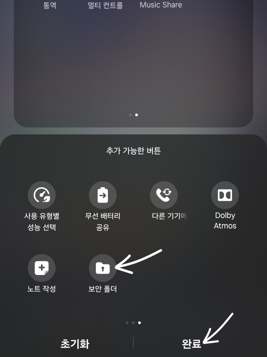 ▼[전체 편집]을 클릭 후 [보안 폴더] 아이콘을 찾아 [완료]를 클릭해 주면 됩니다. 빠른 설정창에 보안 폴더 아이콘이 뜰 겁니다.