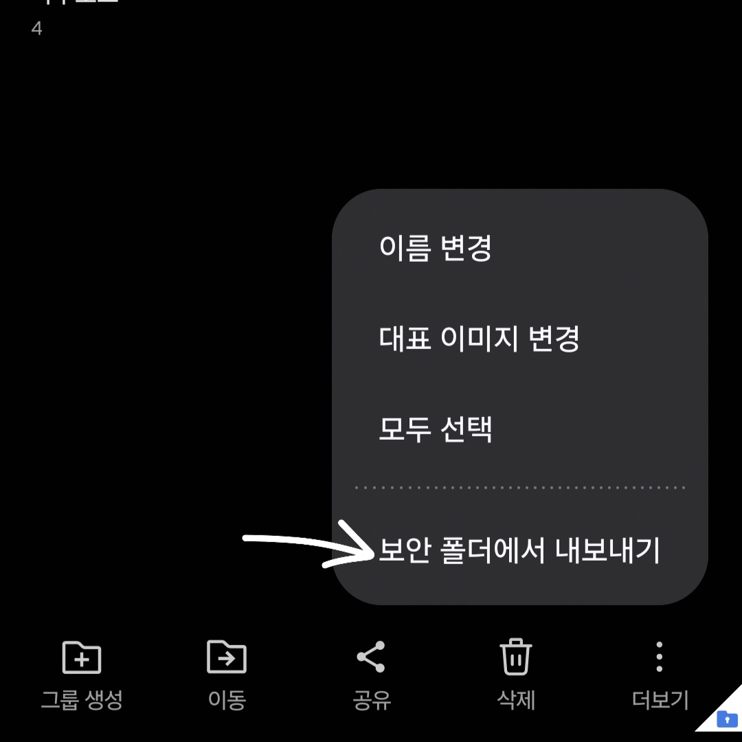 ▼그다음 [•••(더 보기)]를 클릭 후 [보안 폴더 공간으로 이동]을 클릭해 주면 알아서 보안폴더 안으로 이동됩니다.