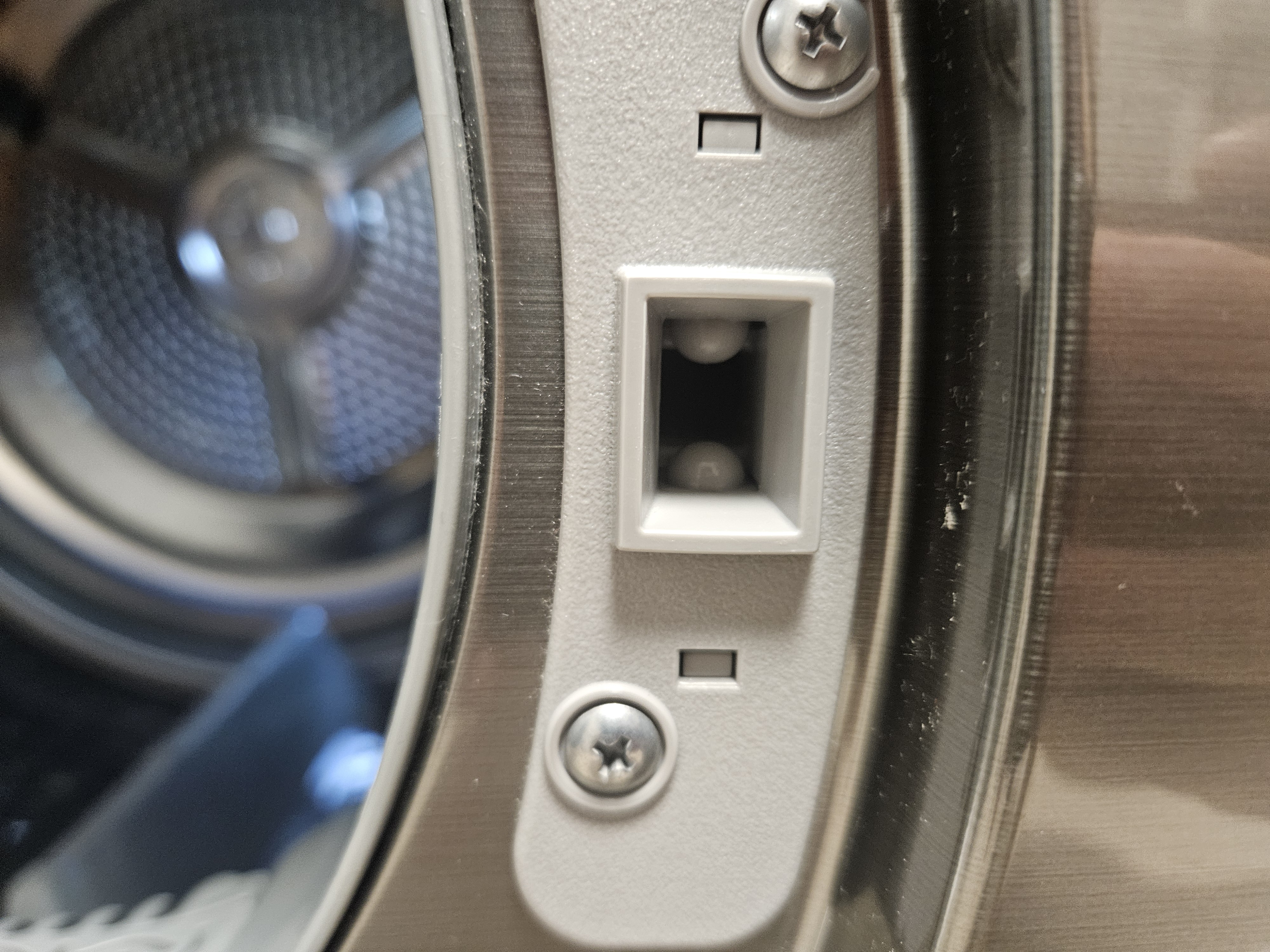 레버 부분이 어딘지 궁금했는데 삼성 9Kg 건조기 도어문을 열면 상단 쪽에 뾰쪽한 게 있고 그리고 건조기 본체 상단 도어 부분을 보면 흰색구멍이 있는데 도어에 있는 뽀쪽한 부분이 흰색구멍에 들어가면서 센서가 발생하는데 그 부분이 고장 난 거였더라고요.