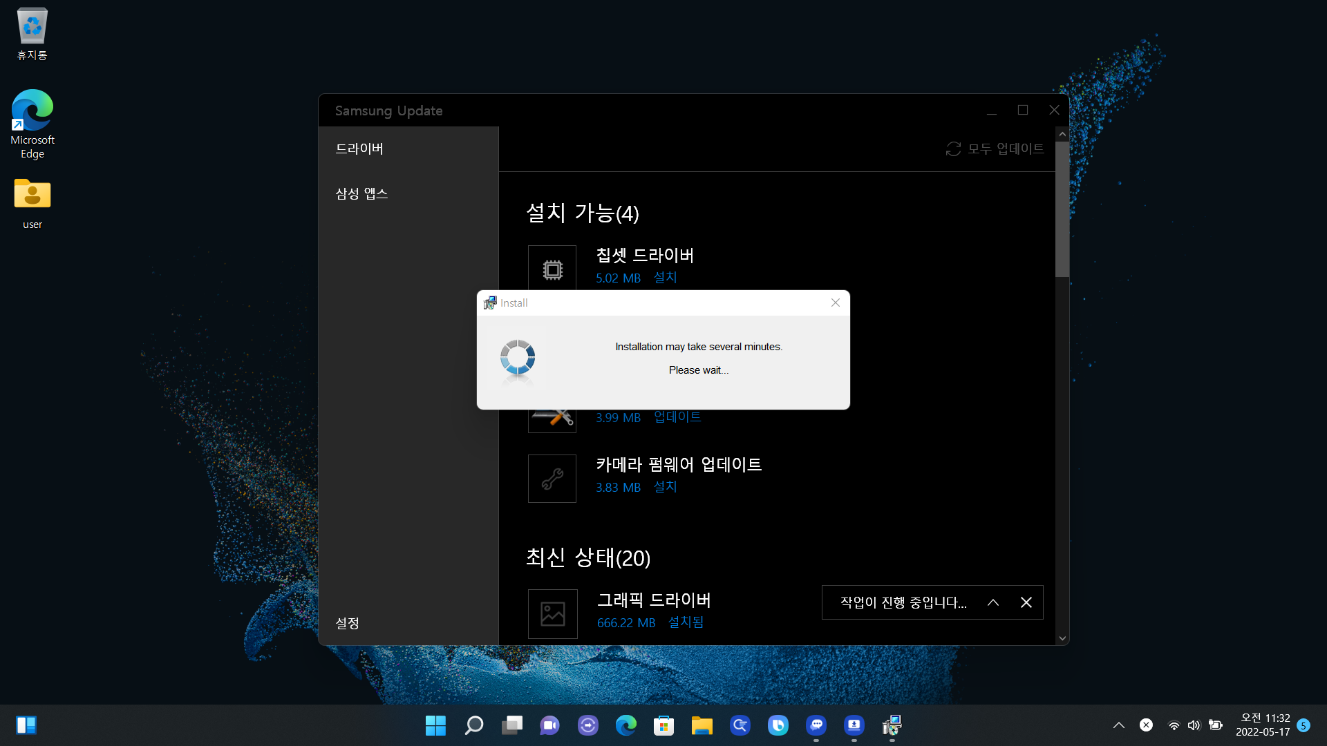 그럼 다시 재부팅과 동시에 자동으로 삼성 업데이트 관련해서 업데이트가 되어있는 걸 확인할 수 있습니다.