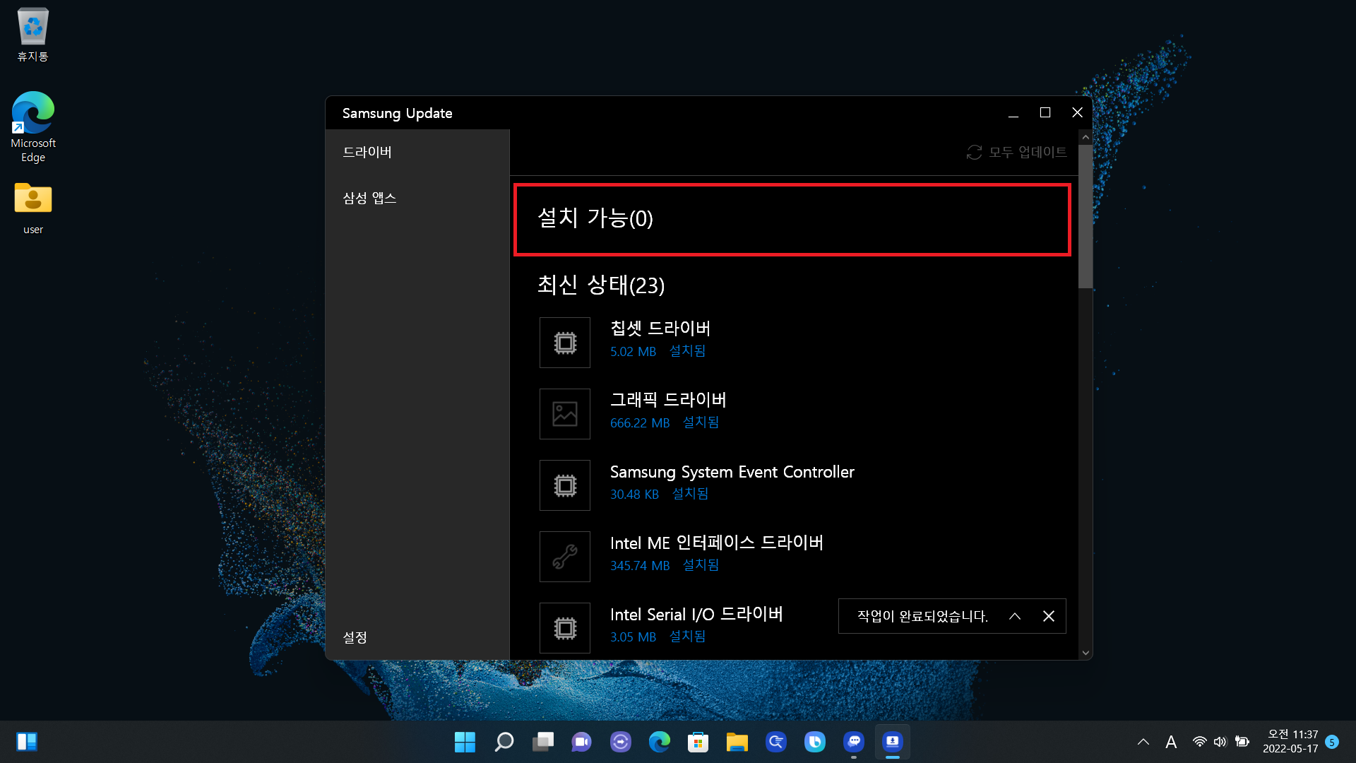그럼 다시 재부팅과 동시에 자동으로 삼성 업데이트 관련해서 업데이트가 되어있는 걸 확인할 수 있습니다.