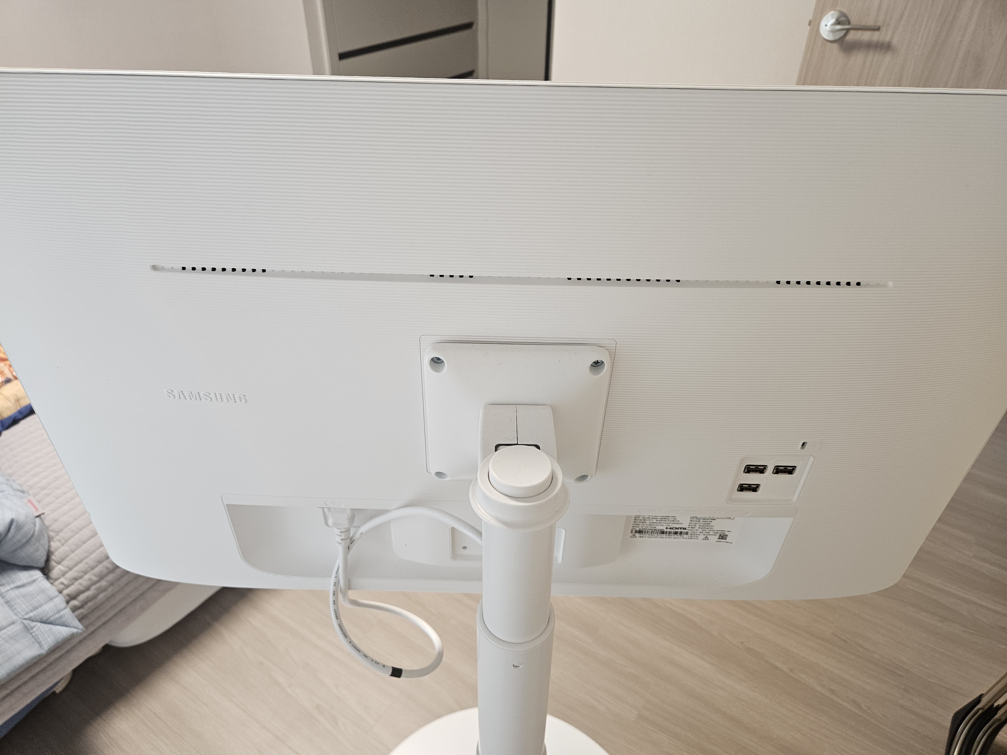 ▼정말 잘 사용하고 있지만 굳이 단점을 하나 꼽자면 바닥에 있는 연결선이 조금 불편할 때가 있는데요. 바닥에 있는 커넥터 연결선이 잘못 끌다가 빠져버리면 스마트모니터 전원이 안 들어오는 경우가 있더라고요. 그럴 땐 바닥에 있는 나사를 풀어서 다시 연결해줘야 하는데 불편했답니다.