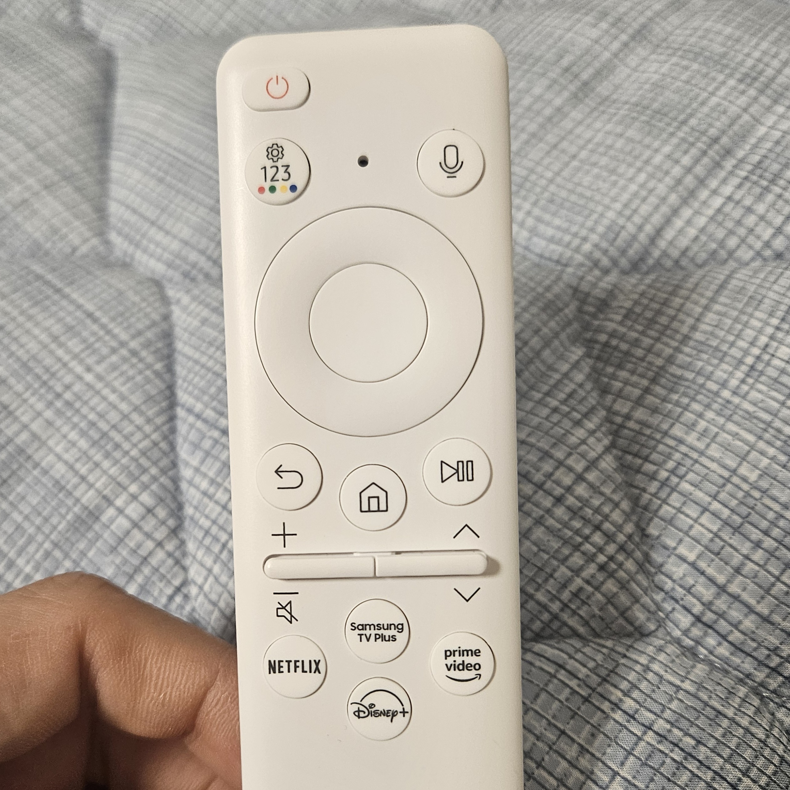 ▼제가 구매한 모델은 리모컨에 음성인식 기능도 있어 마이크모양을 누른 상태로 빅스비를 활성화시킬 수 있어 삼성가전을 스마트싱스에 연결했다면 스마트리모컨으로 제어도 할 수 있답니다.