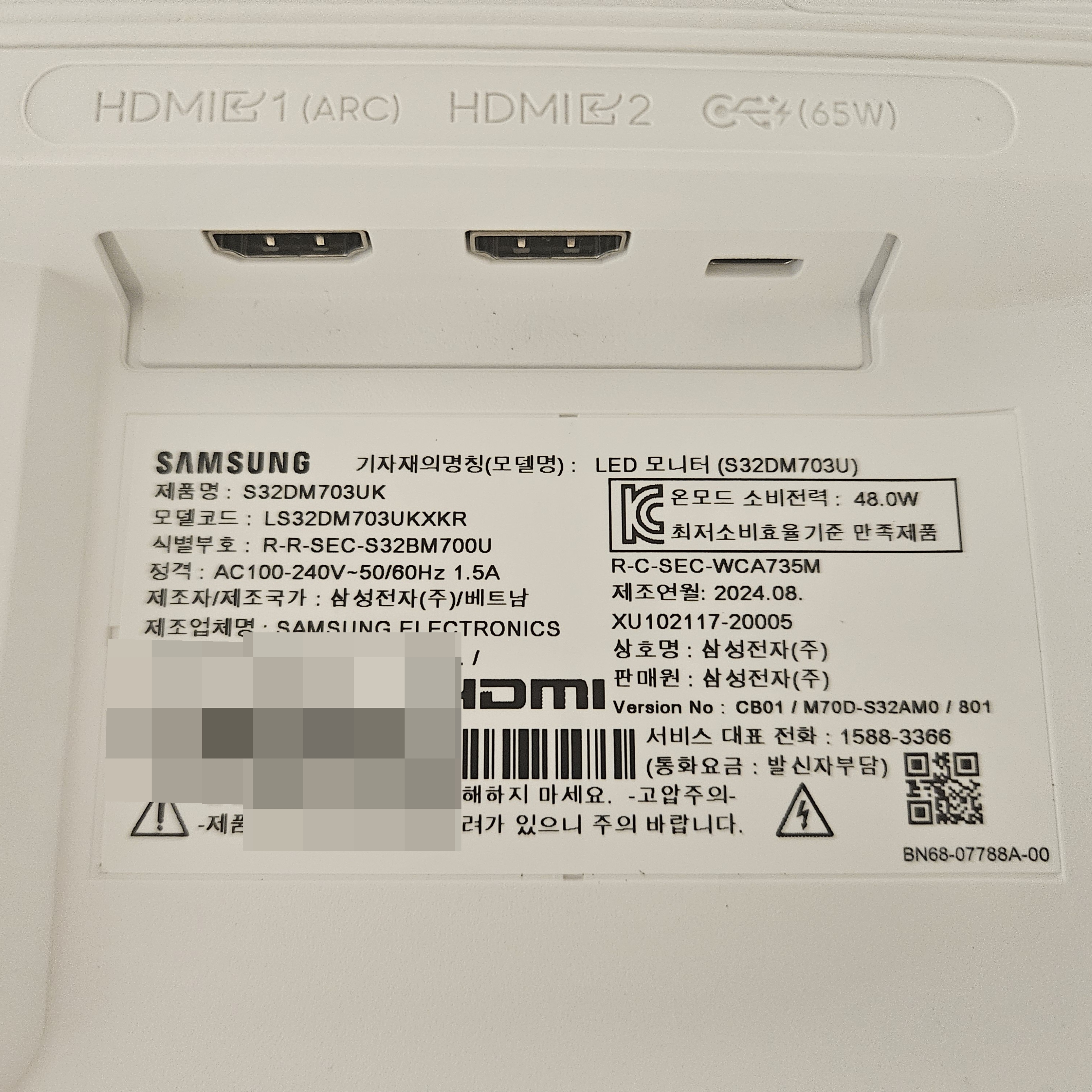 ▼제가 구매한 모델명은 LS32DM703UKXKR 제품으로 32인치 UHD인데 뒤에 포트가 USB포트 3개, USB-C 1개, HDMI 2개가 있답니다.