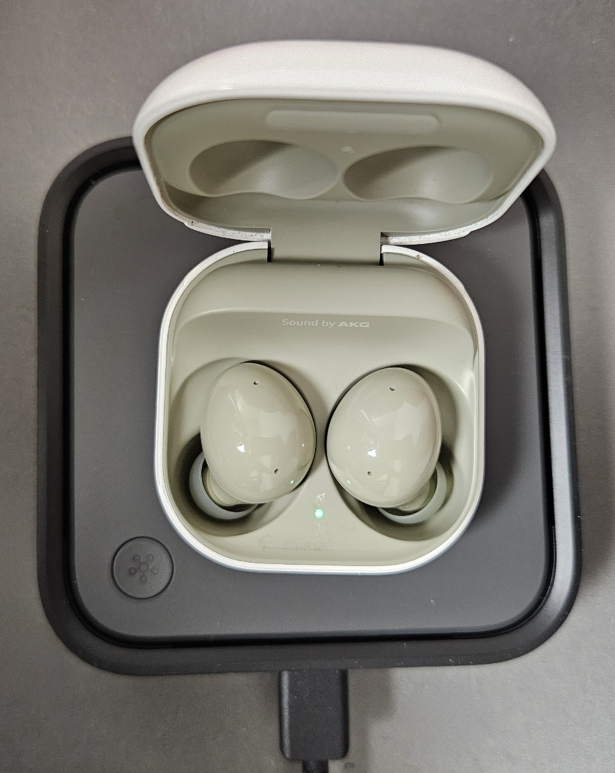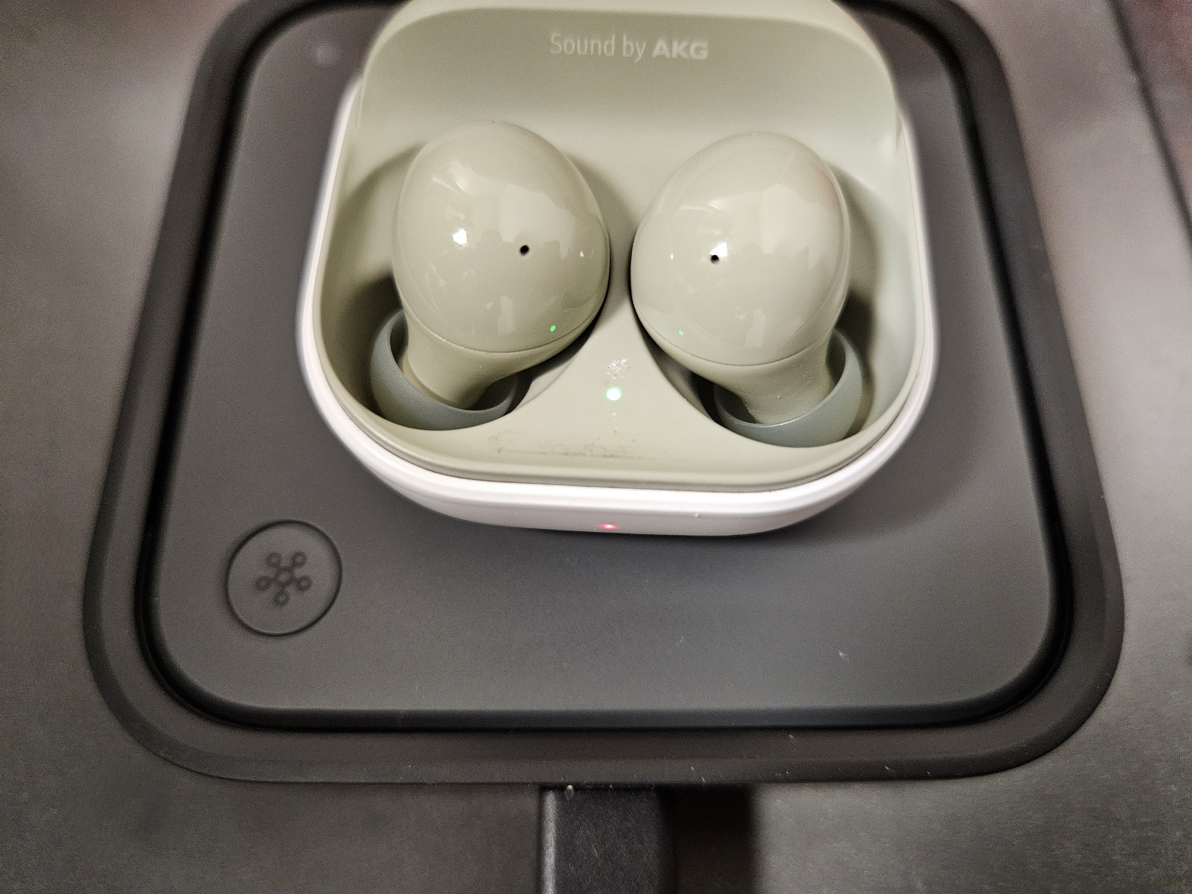 보시는 것처럼 스마트싱스 스테이션에 충전기를 꽂고 갤럭시 버즈를 충전해 보았는데요. 이런 경험 한 번쯤 있었을 겁니다. 충전을 자주 해 충전 구멍이 헐거워져 충전이 잘 안 되는 경험말이죠. 무선으로 충전하면 그런 일은 안 생기지 않을까 싶습니다.