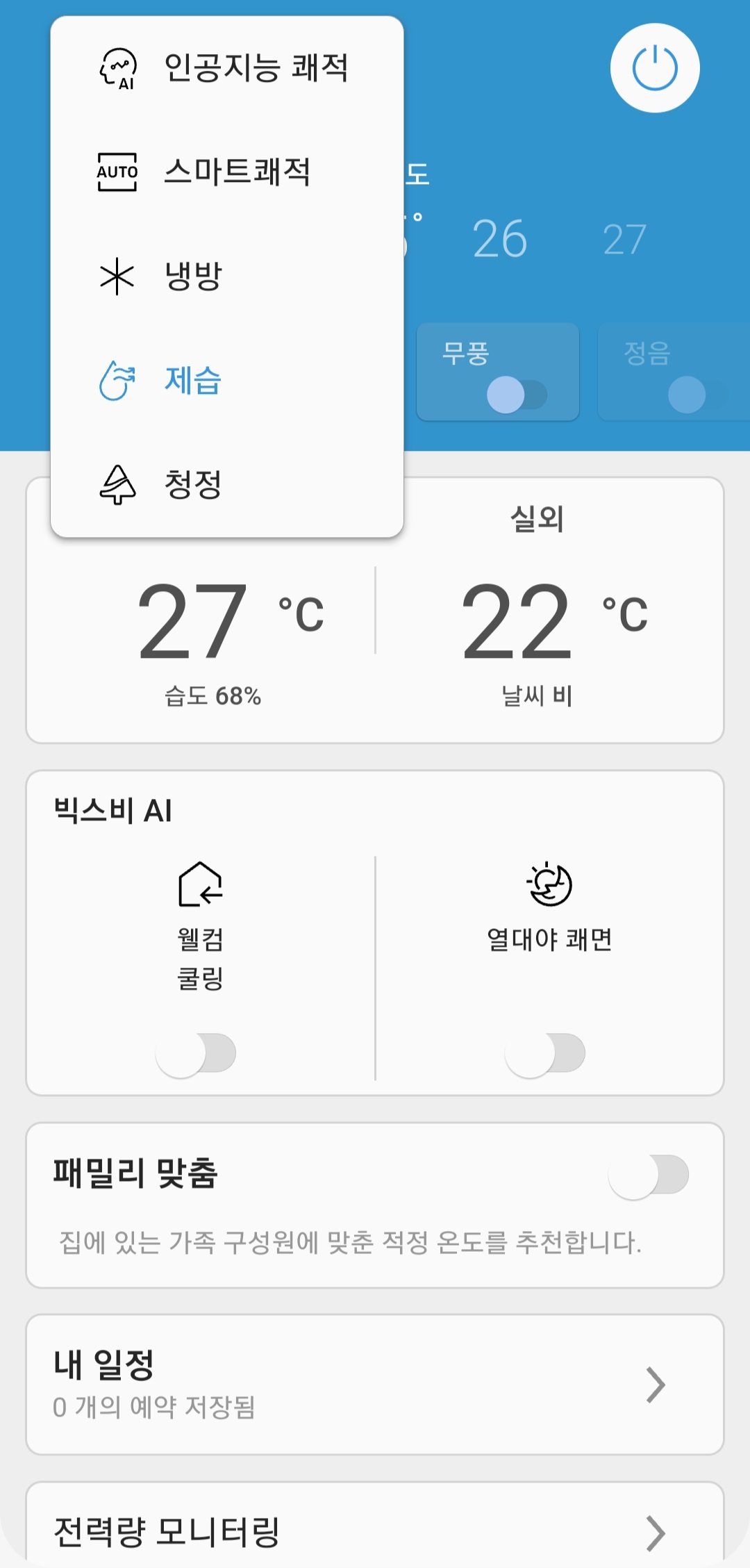 그럼 실제 사용 중인 삼성 에어컨 디스플레이에 AP라는 문구가 뜹니다.