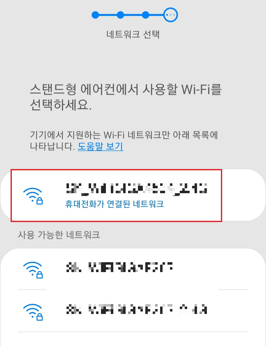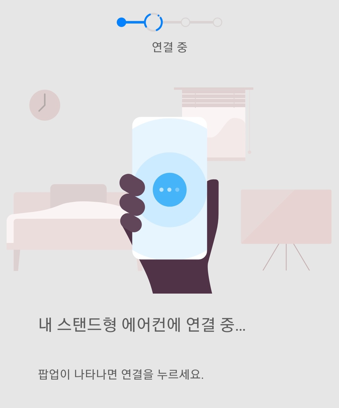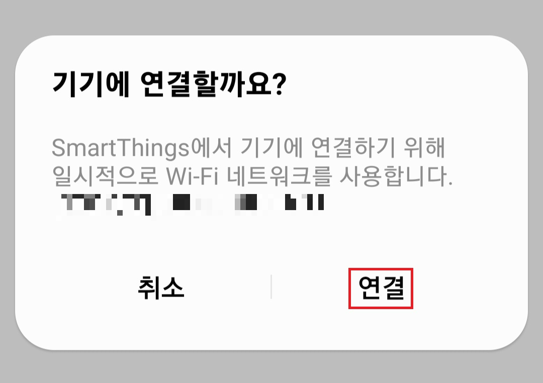 그다음 자동으로 스마트폰이랑 에어컨이 연동이 되고 집에 있는 와이파이 네트워크랑 연결하기 위해 "연결" 문구가 뜨면 연결을 해줍니다.