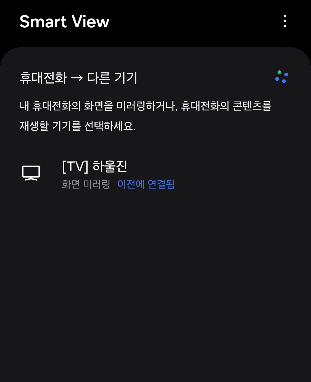 ▼다시 스마트 뷰 기능을 실행하면 방금 전 변경했던 기기 이름으로 설정되어 있는 걸 확인할 수 있을 겁니다.