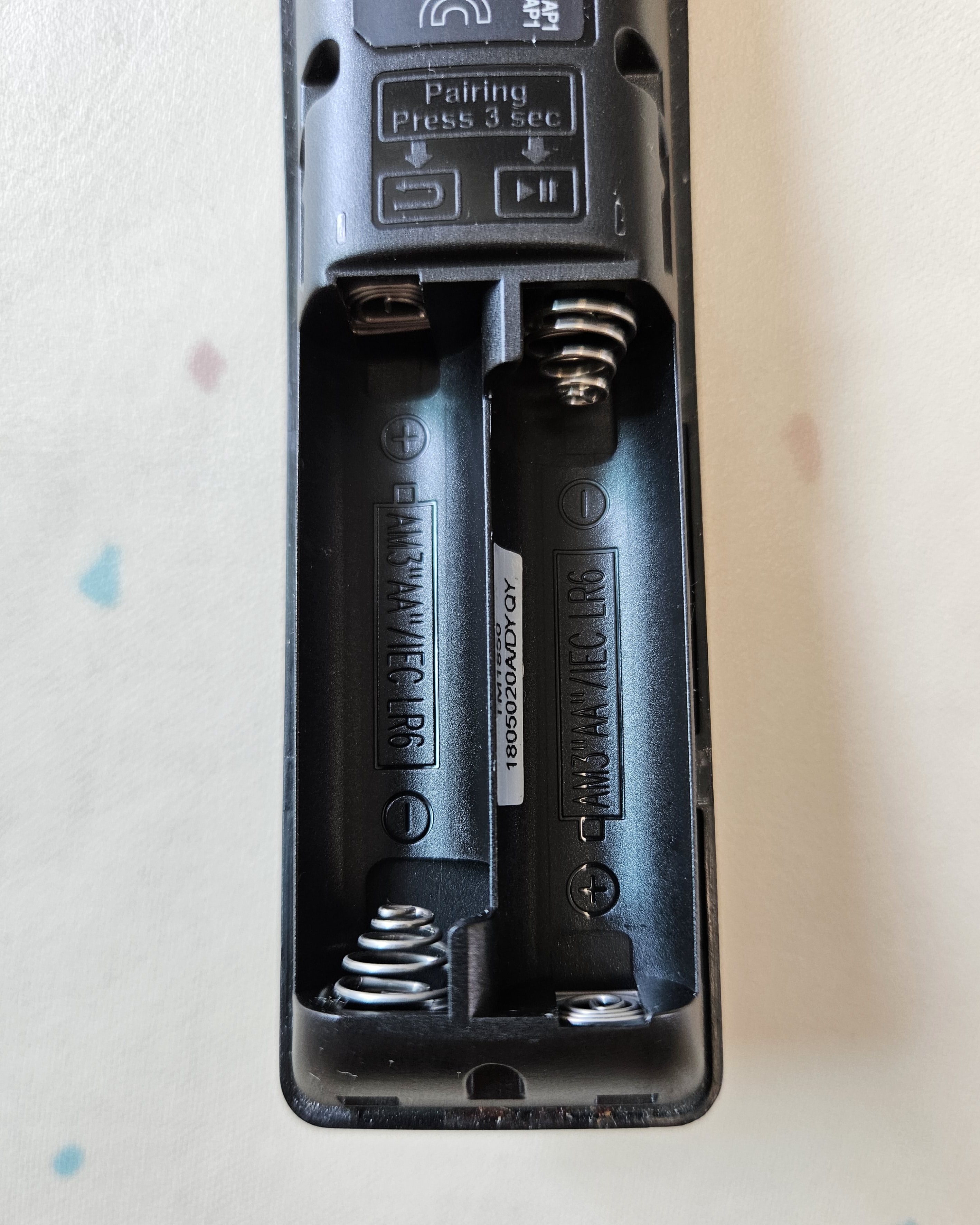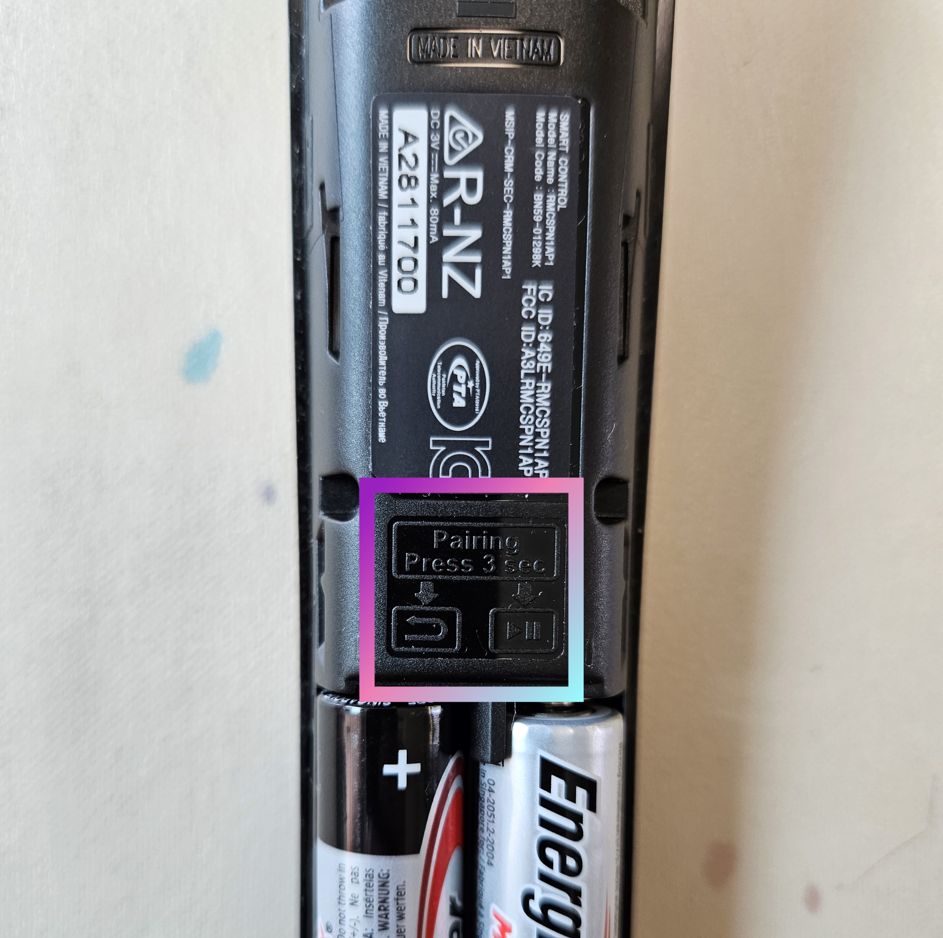 ▼만약 제가 사용하고 있는 스마트 리모컨이랑 버튼 모양이 다르다면 페어링모드로 전환되는 버튼도 다를 수 있는데요. 그럼 스마트 리모컨 뒤쪽 편이나 건전지 꽂는 쪽을 자세히 보면 페어링모드로 전환하는 버튼이 어떤 건지 각인되어 있을 겁니다. 그럼 해당 버튼을 동시에 눌러서 페어링 모드로 전환해 주세요.
