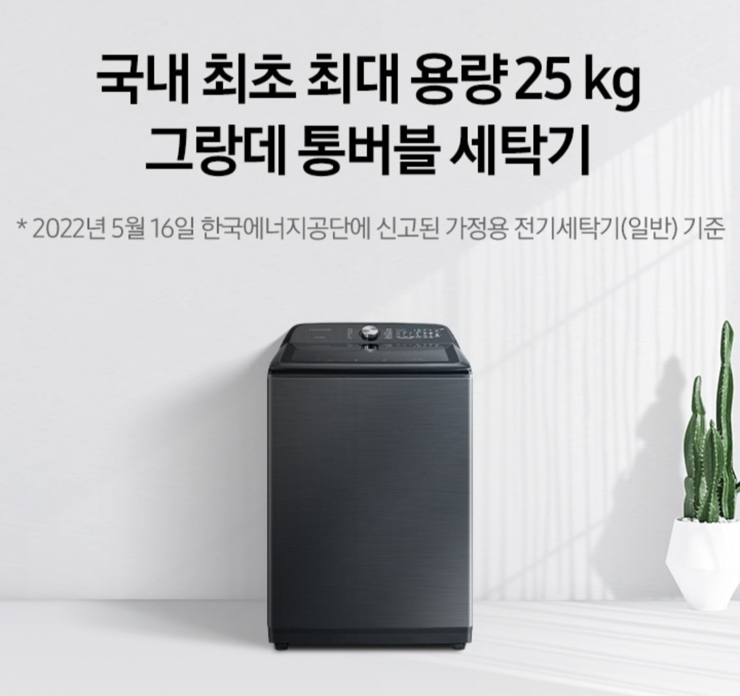 그랑데 통버블 세탁기 25Kg 입체 돌풍 세탁