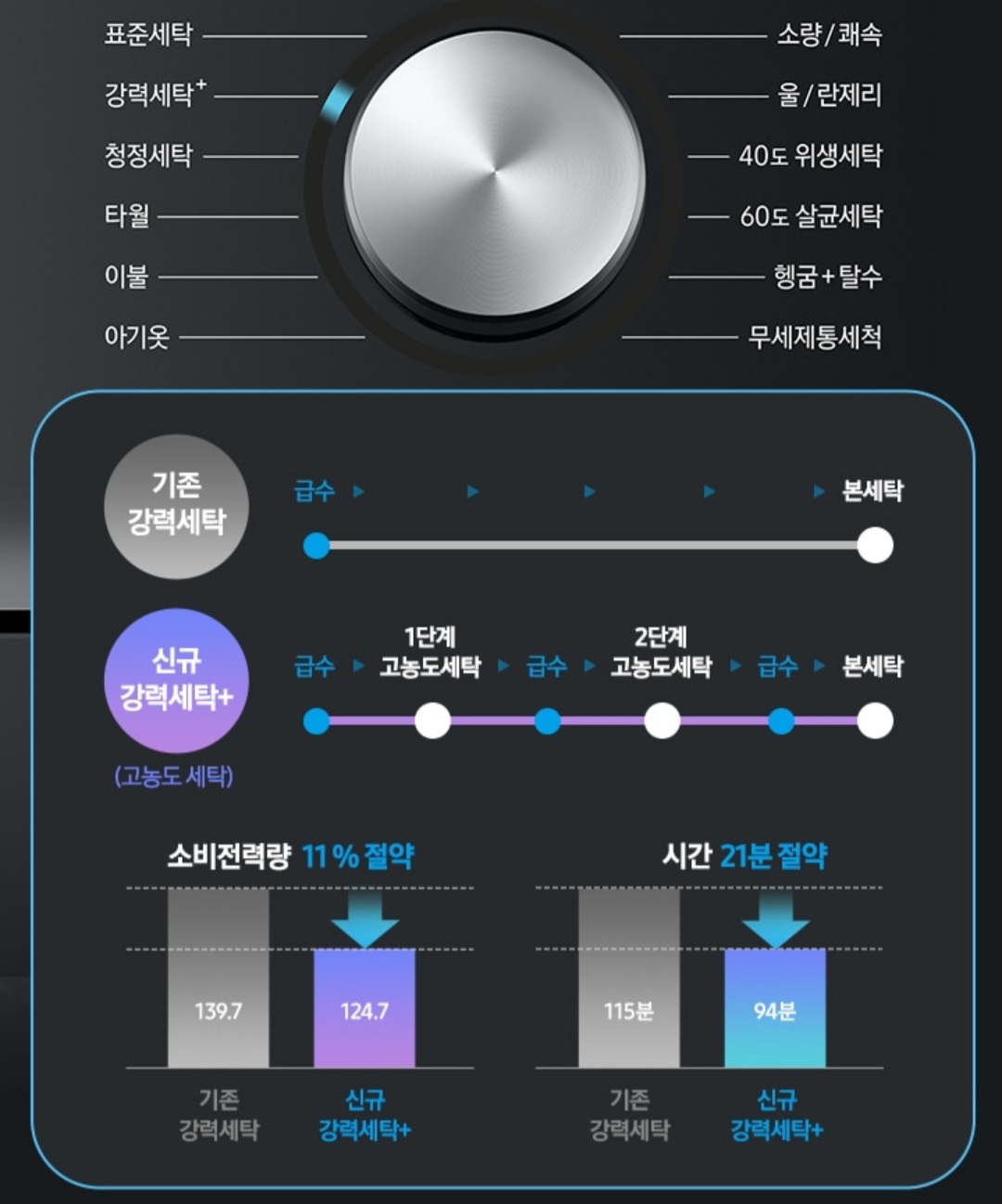 기존 대비 더 강력해준 강력 세탁+ 코스