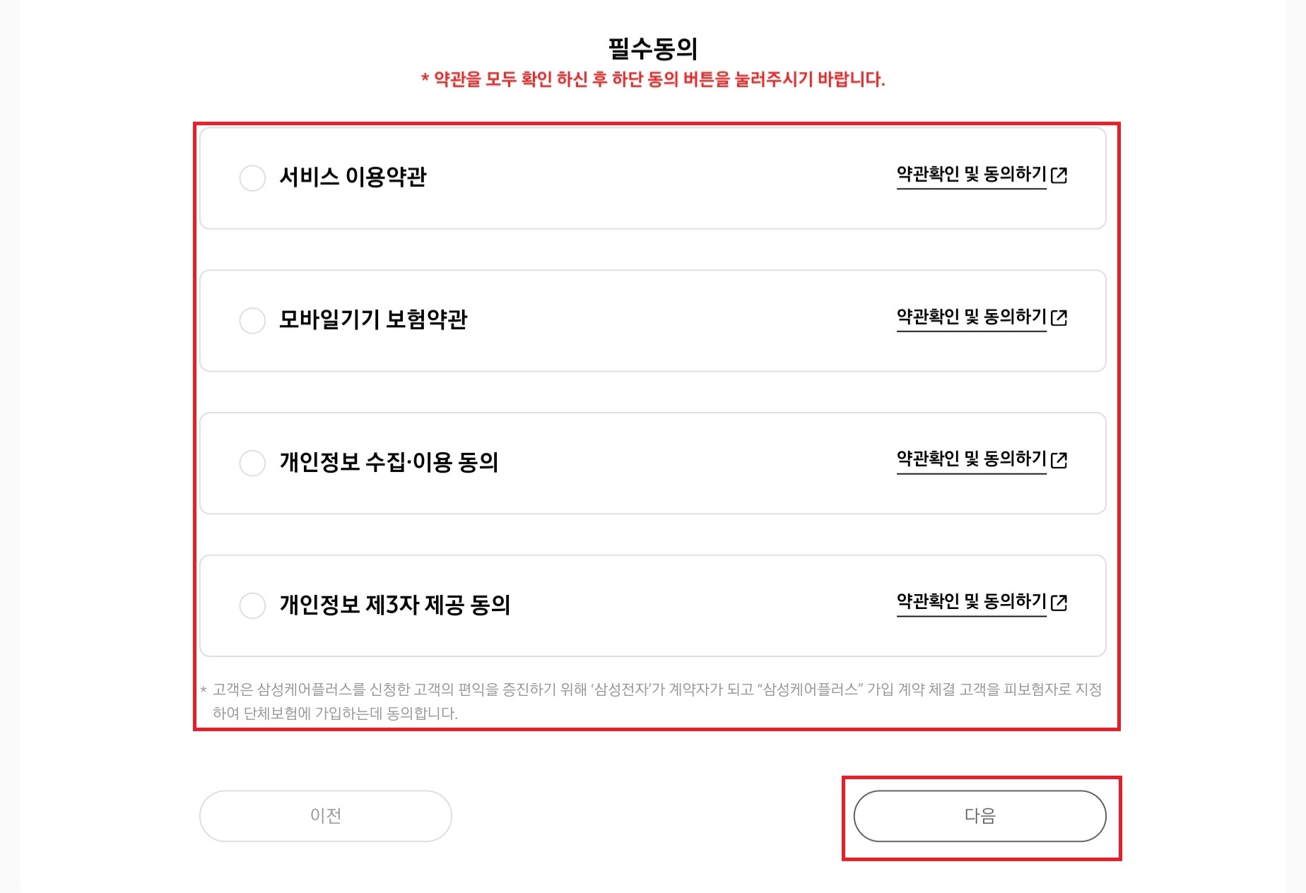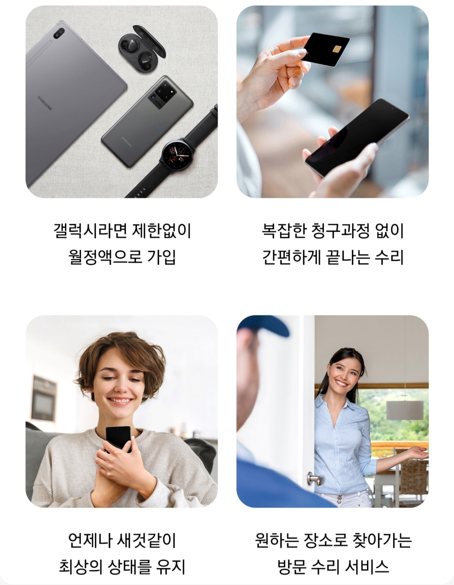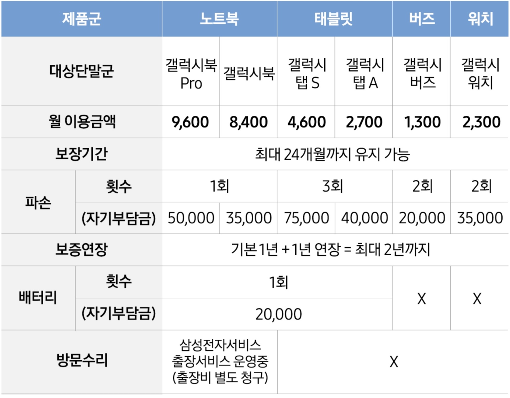 3) 삼성 케어 플러스 월정책 요금은 사전 통지 없이 변경될 수도 있습니다. (가입 시점에 따라 월 정액 요금이 달라질 수 있습니다)