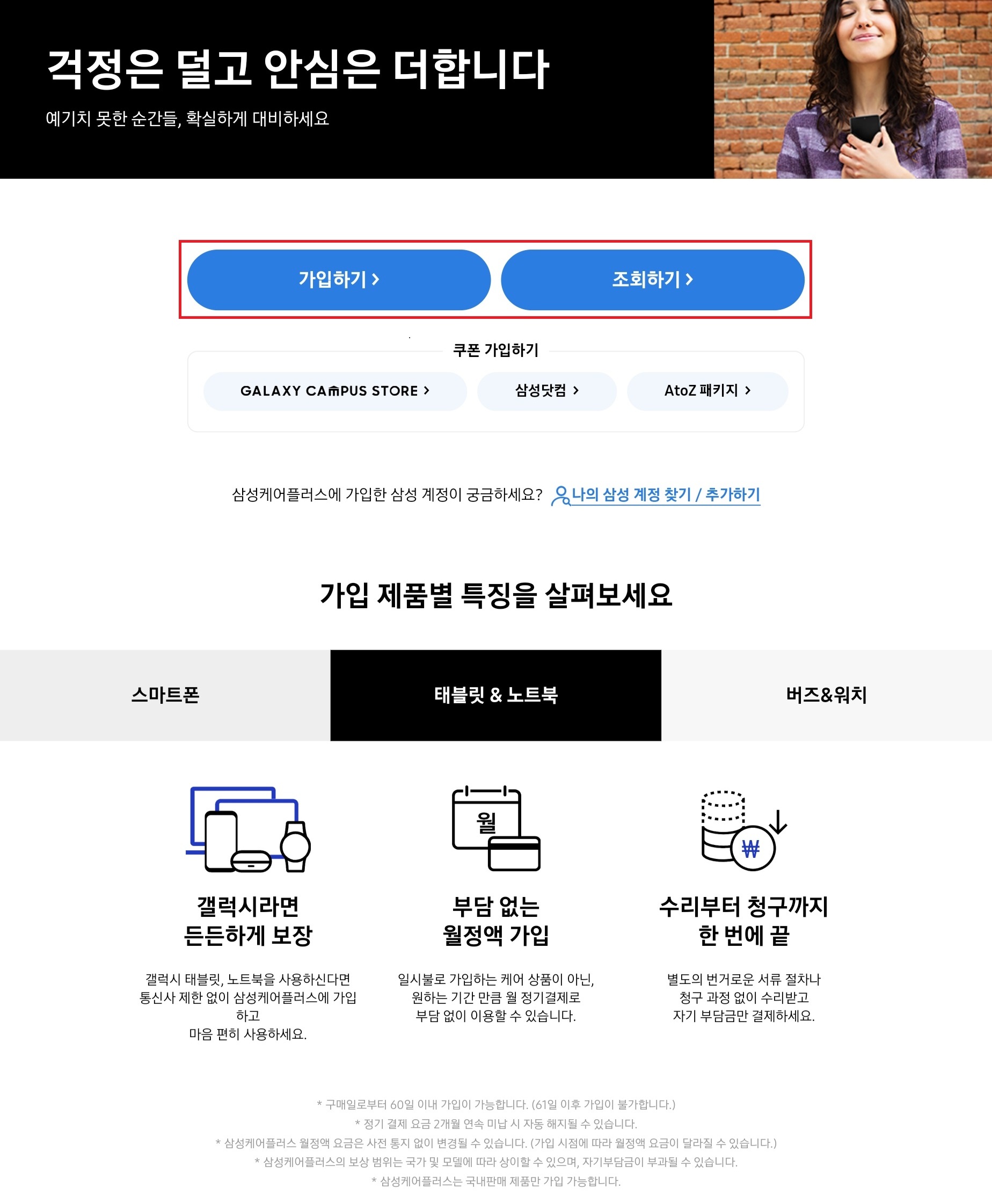 5) 삼성 케어플러스는 국내 판매 제품만 가입 가능합니다.