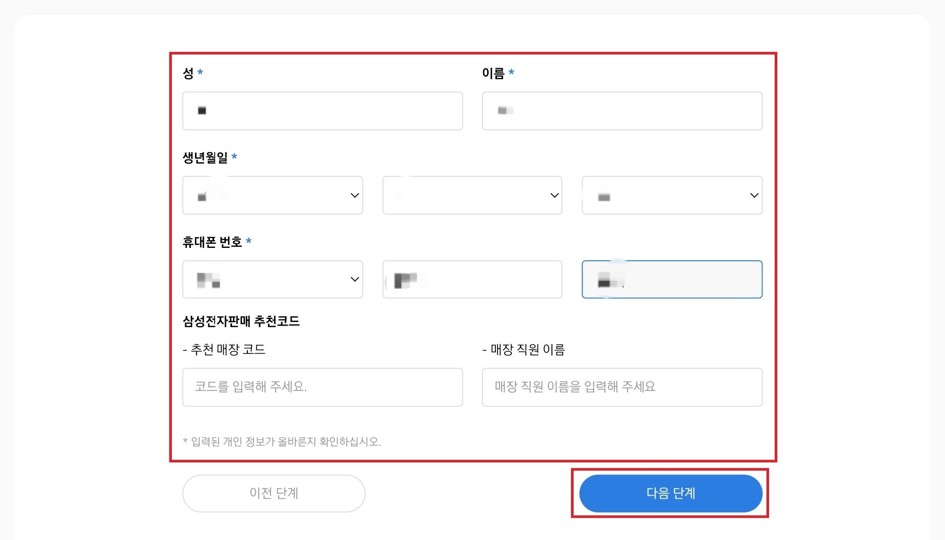 본인 개인정보 입력한 후에 다음 단계로 넘어갑니다.