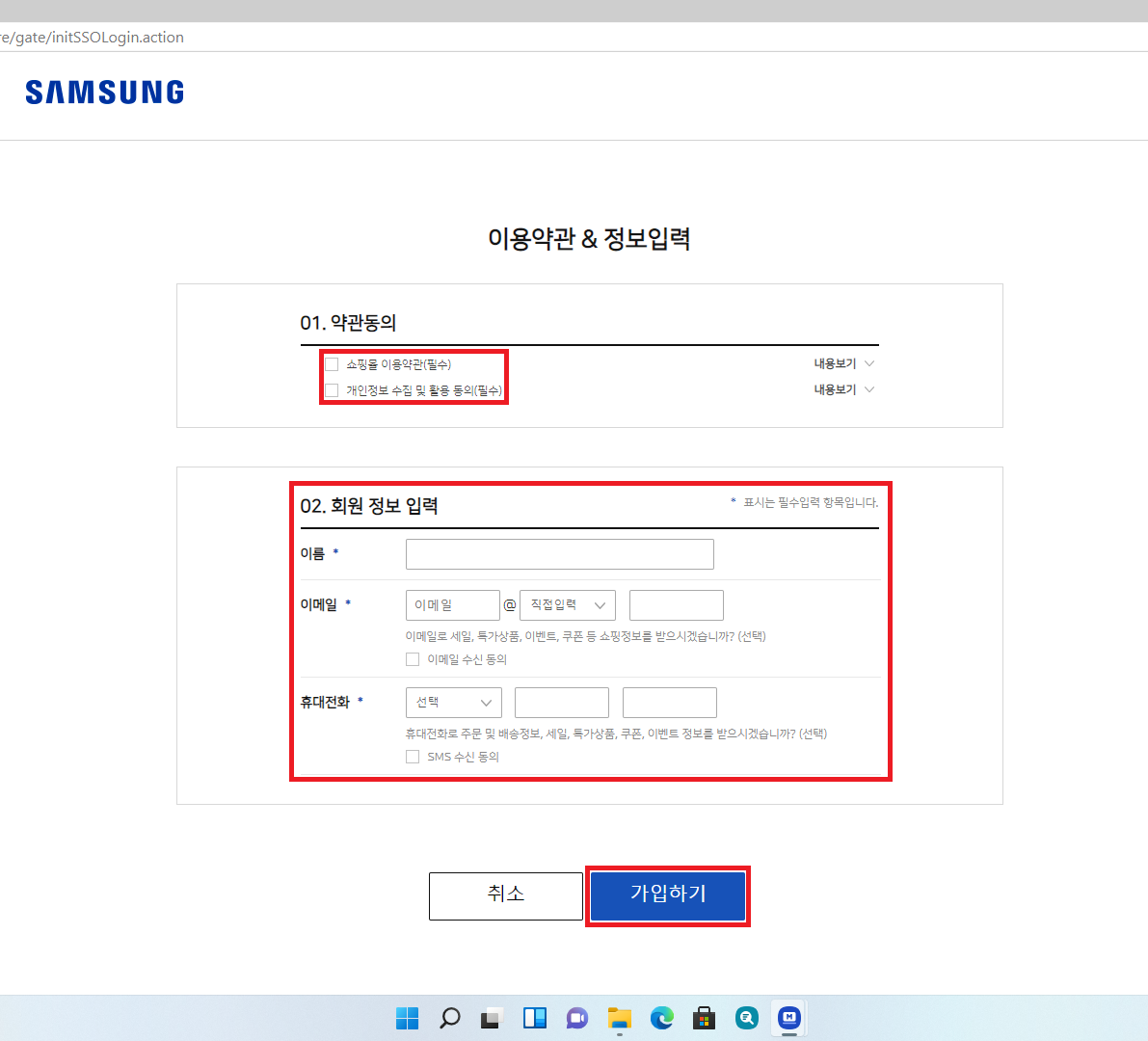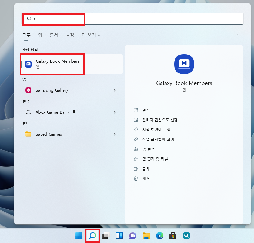 윈도우 검색창에 영어로 "Galay Book Memders"라고 작성하고 갤럭시 북 멤버스 앱을 실행하면 개인정보 동의란이 뜹니다. 그럼 "필수항목 및 선택항목에 대해 모두 동의합니다"라는 체크란에 체크 후 확인 버튼을 클릭해줍니다.