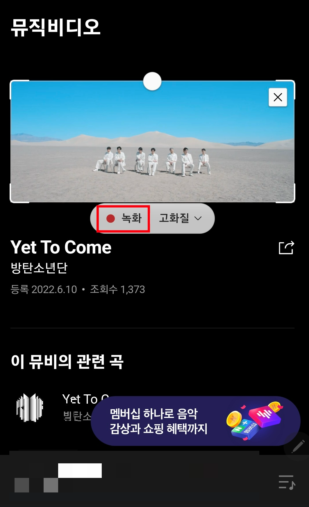 그다음 GIF 영상을 만들고 싶은 동영상을 재생 후 녹화 크기를 맞춘 다음 [녹화] 버튼을 클릭해줍니다. 그럼 최대 15초 동안 GIF 영상을 만들 수 있고 중간에 [중지] 버튼을 클릭하면 15초까지 녹화를 하지 않아도 됩니다.