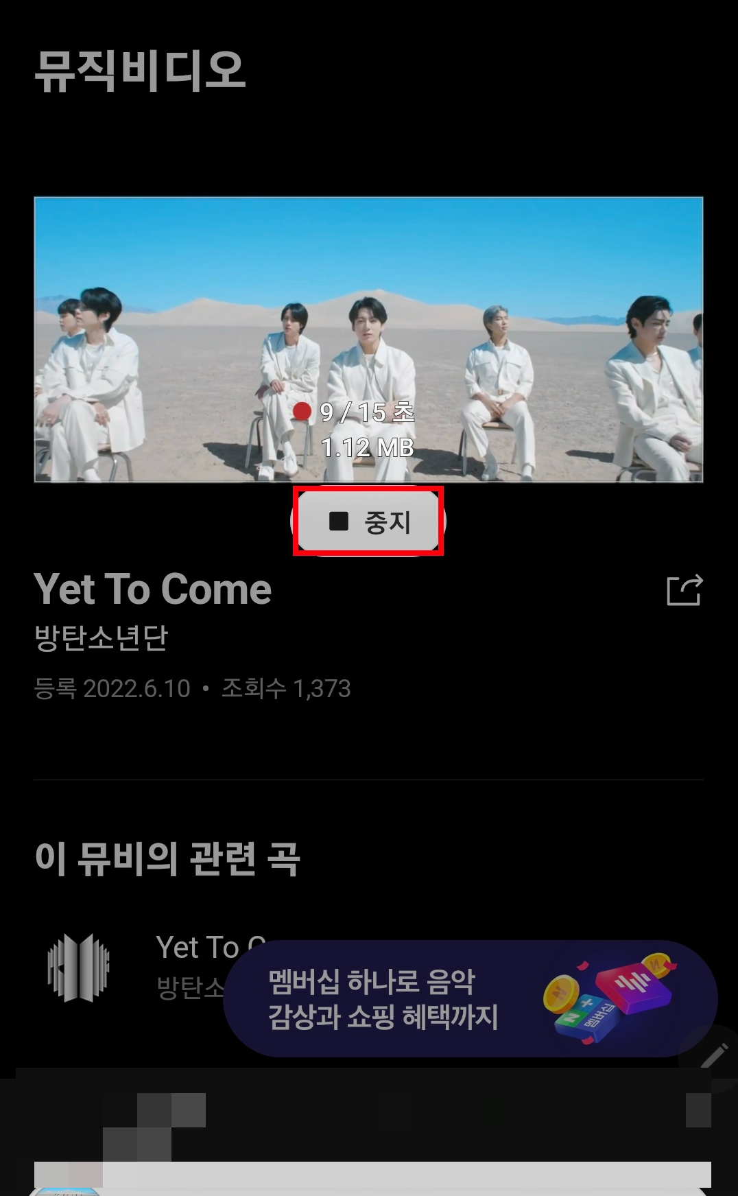 그다음 GIF 영상을 만들고 싶은 동영상을 재생 후 녹화 크기를 맞춘 다음 [녹화] 버튼을 클릭해줍니다. 그럼 최대 15초 동안 GIF 영상을 만들 수 있고 중간에 [중지] 버튼을 클릭하면 15초까지 녹화를 하지 않아도 됩니다.