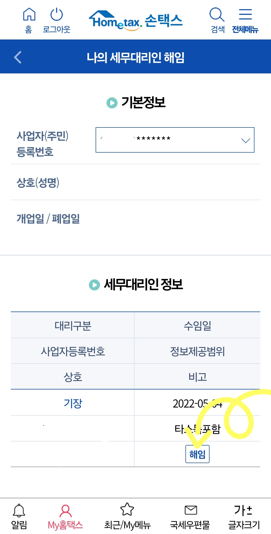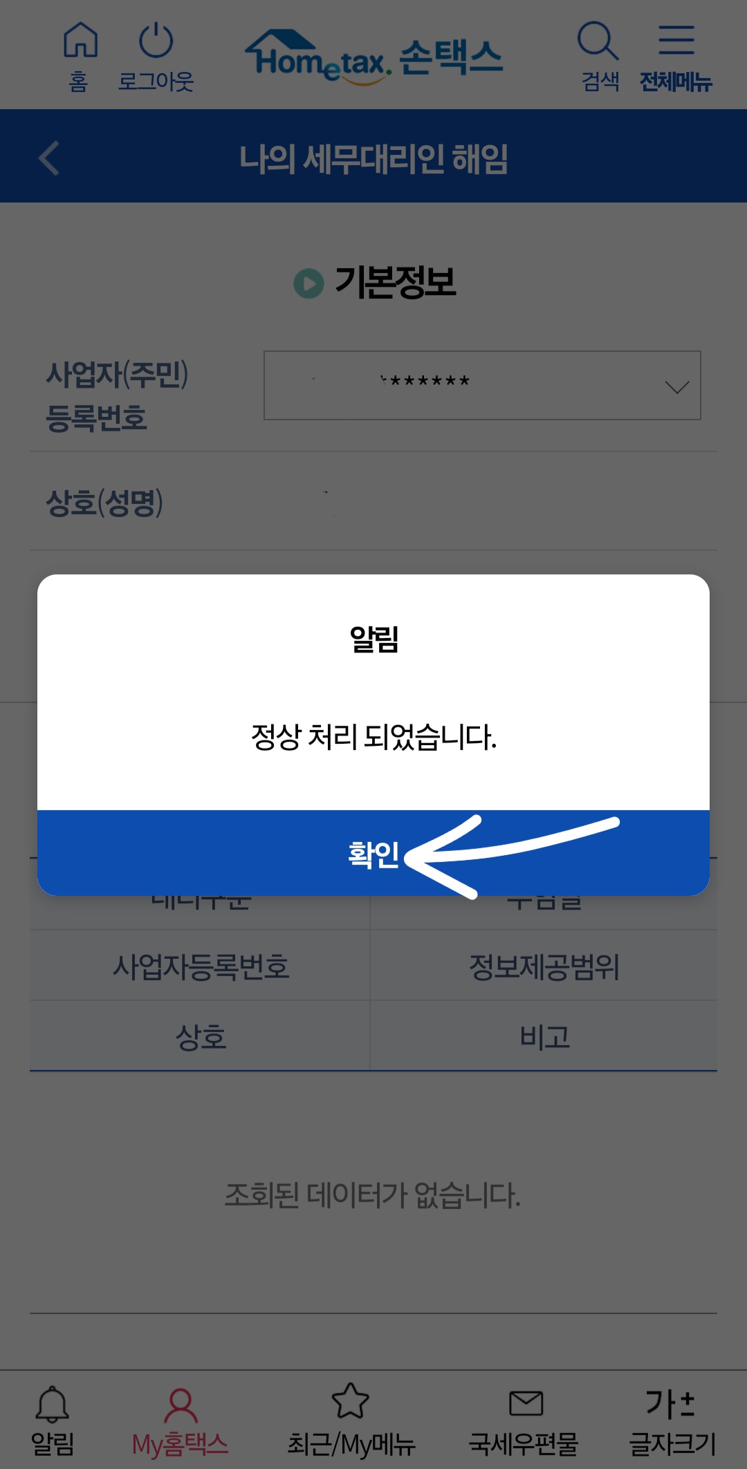 ▼그럼 세무 대리인정보란이 깔끔히 지워진 걸 확인할 수 있을 겁니다.