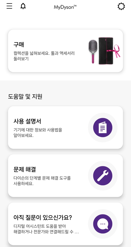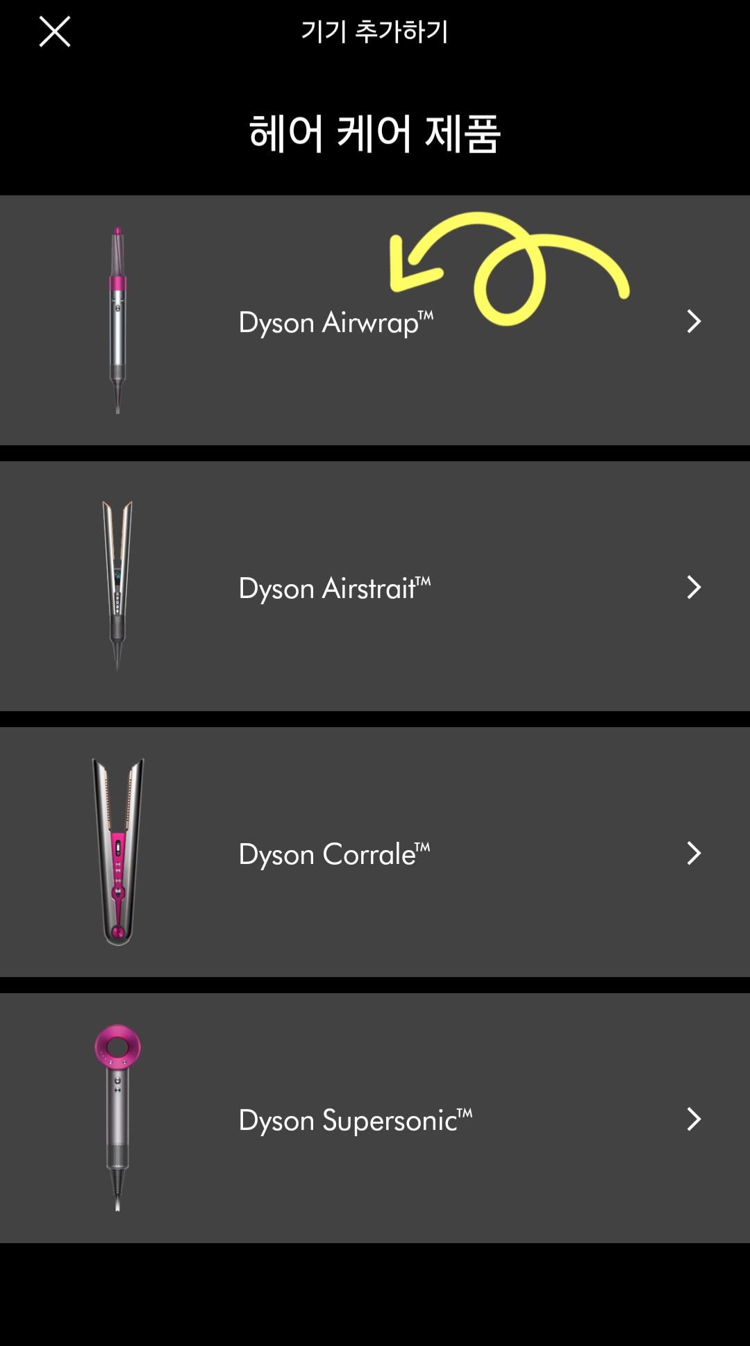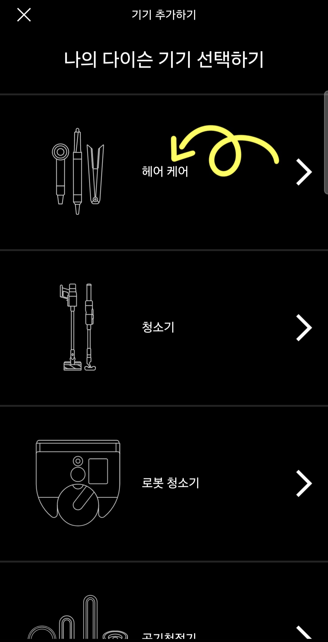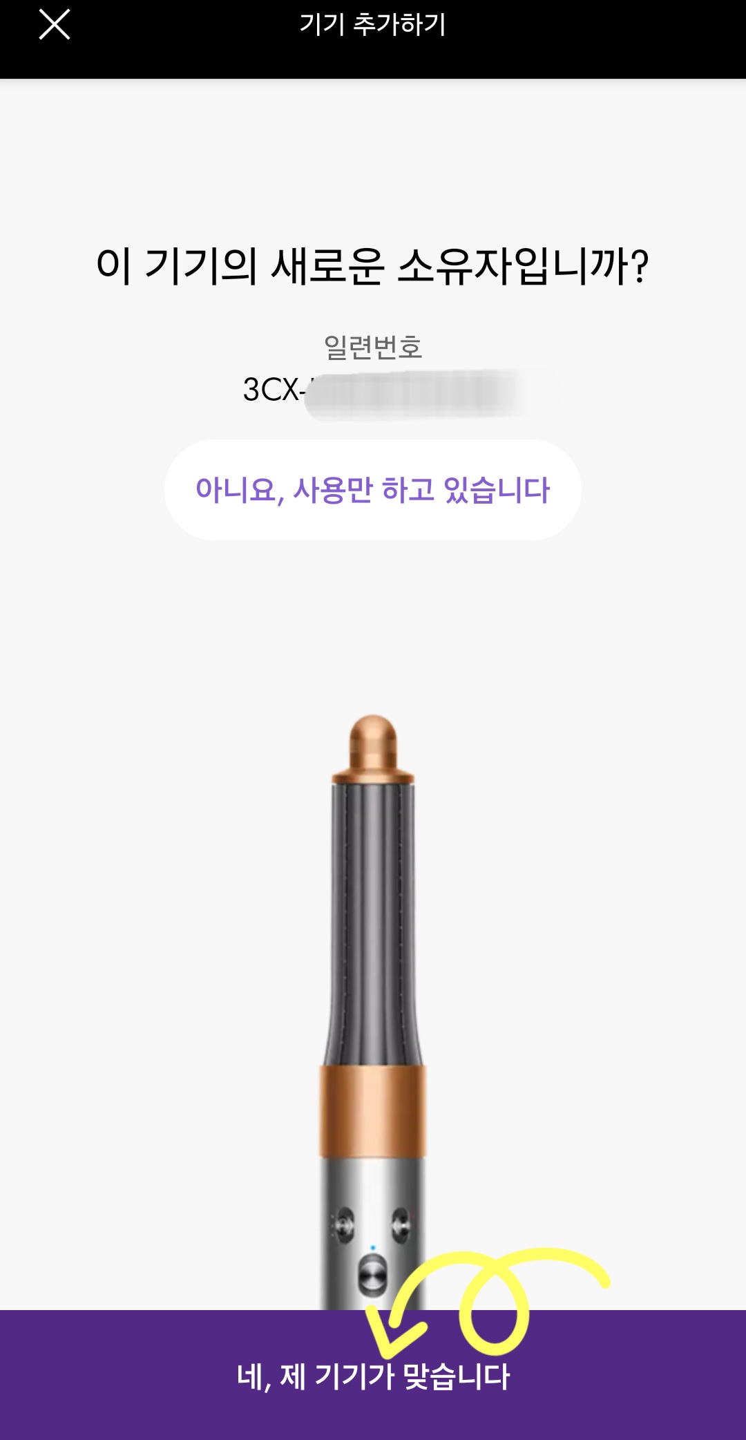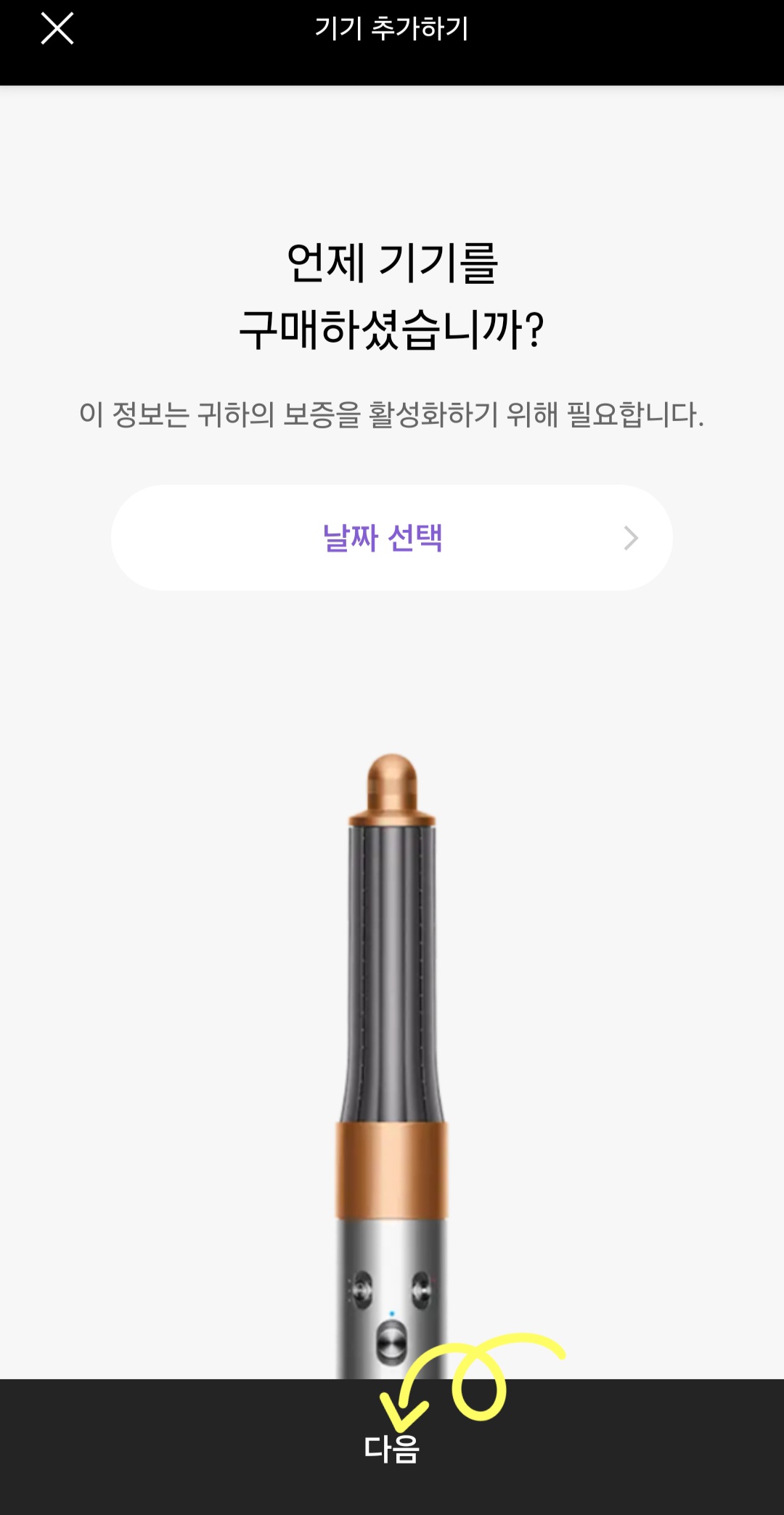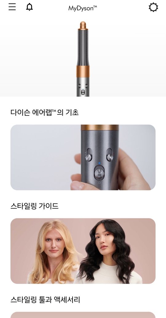 엄마가 와이프 선물로 구매해 준 다이슨 에어랩. 다이슨 전용앱을 다운로드하여 등록해 보았습니다.