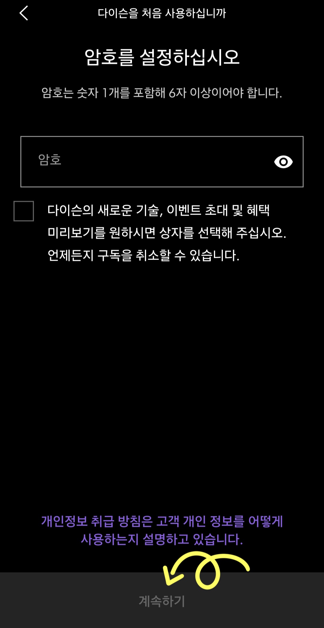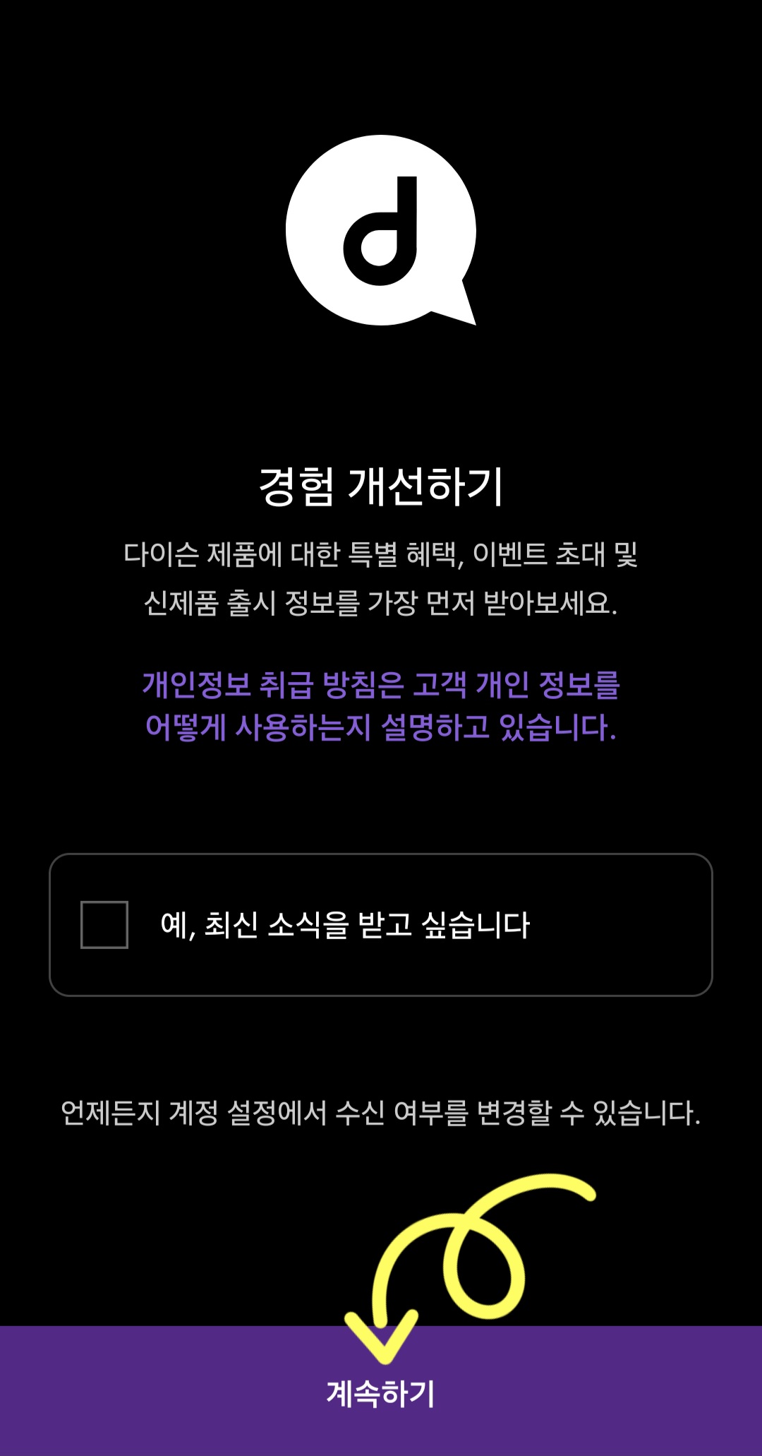 ▼그럼 광고를 받을 거냐고 물어보는데 저는 체크를 안 하고 계속하기를 클릭했답니다. 만약 다이슨 관련 광고를 받고 싶다면 체크 후 다음으로 넘어가주세요.
